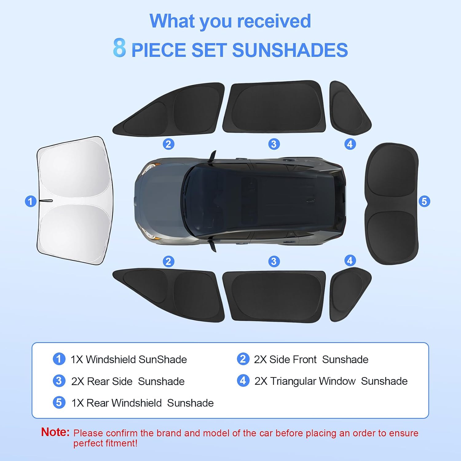 8pcs Car Window Shades for Volkswagen VW Tiguan 2018-2023 Accessories,Windshield Side Rear Full Sunshade,Sun Visor UV Blocking, Privacy Protection and Blackout for Camping Outdoor