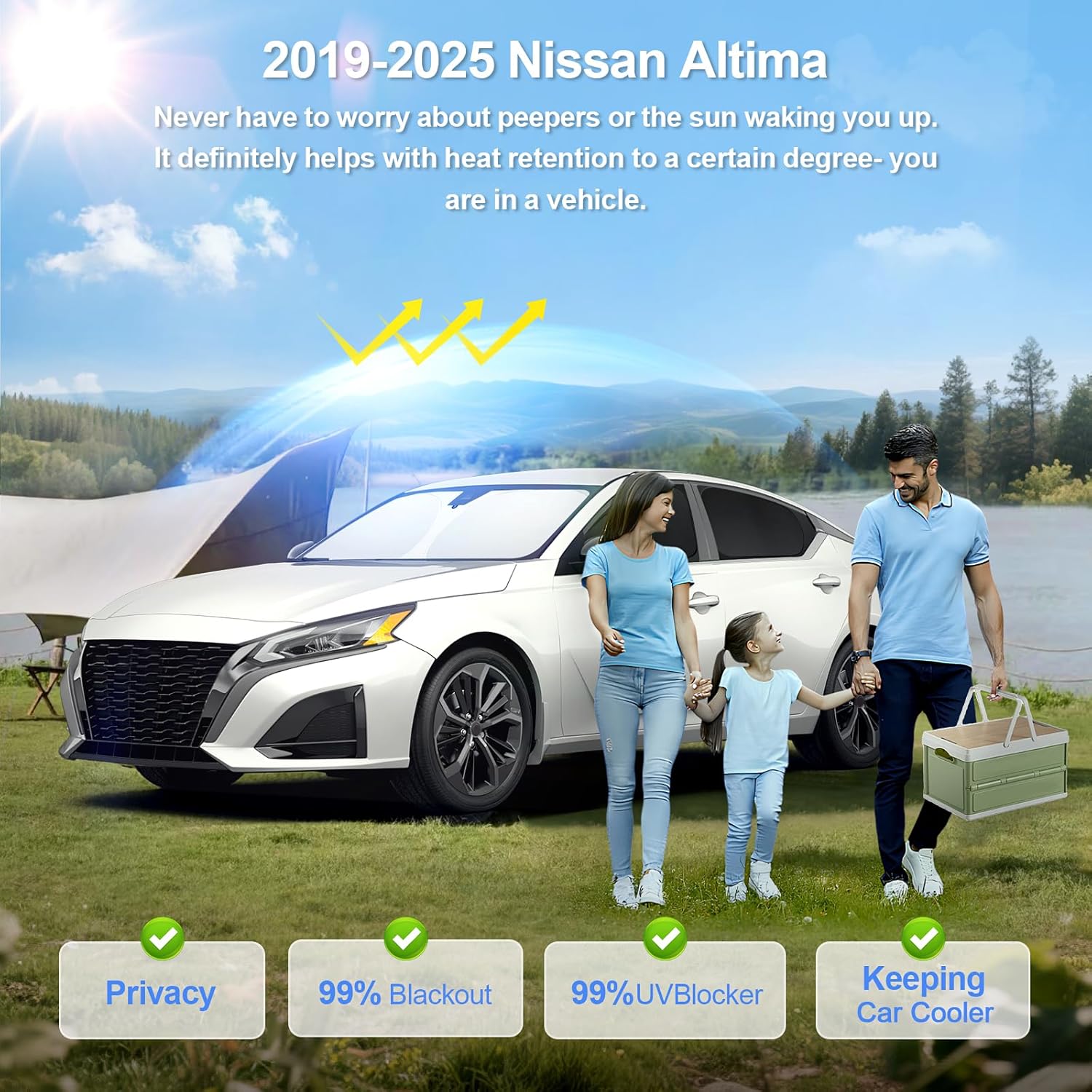 - Designed specifically:SHINELINERS full window sunshade is specially designed for Nissan Altima 2019 2020 2021 2022 2023 2024 2025.Provide your car with comprehensive UV and infrared protection, not only keeping the interior cool in hot weather but also extending the lifespan of the car's interior