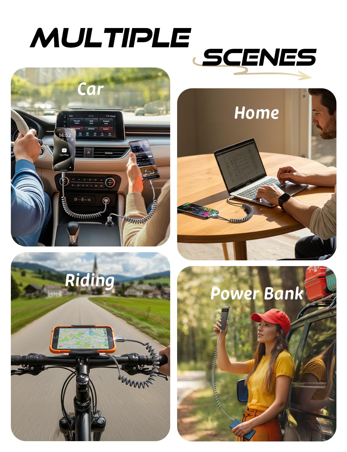 - 【Neat & Safe Driving Companion】Are you tired of the messy cables in your car, and want to make your center console look neater? Carplay cable unique telescopic spring cable design avoids the drawbacks of ordinary straight cables, such as getting stuck on the gear lever or hanging near the accelerator/brake pedal that affect driving operations. It delivers a more focused and safe driving experience