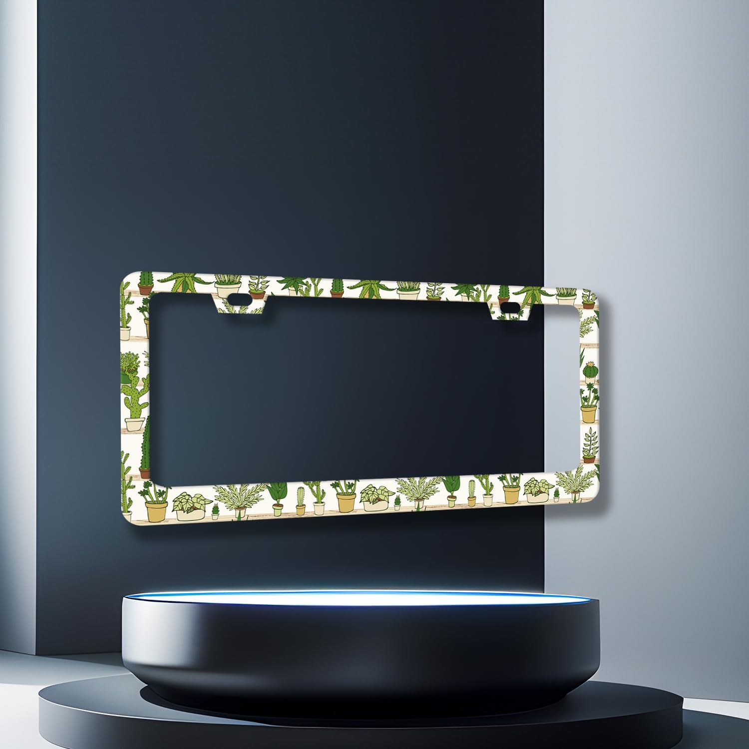 Cute Cactus License Plate Frame Tropical License Plate Holder Stainless Steel Funny Design Compatible with Standard License Plate for USA Canada 12.3" x 6.3" with 2 Screws