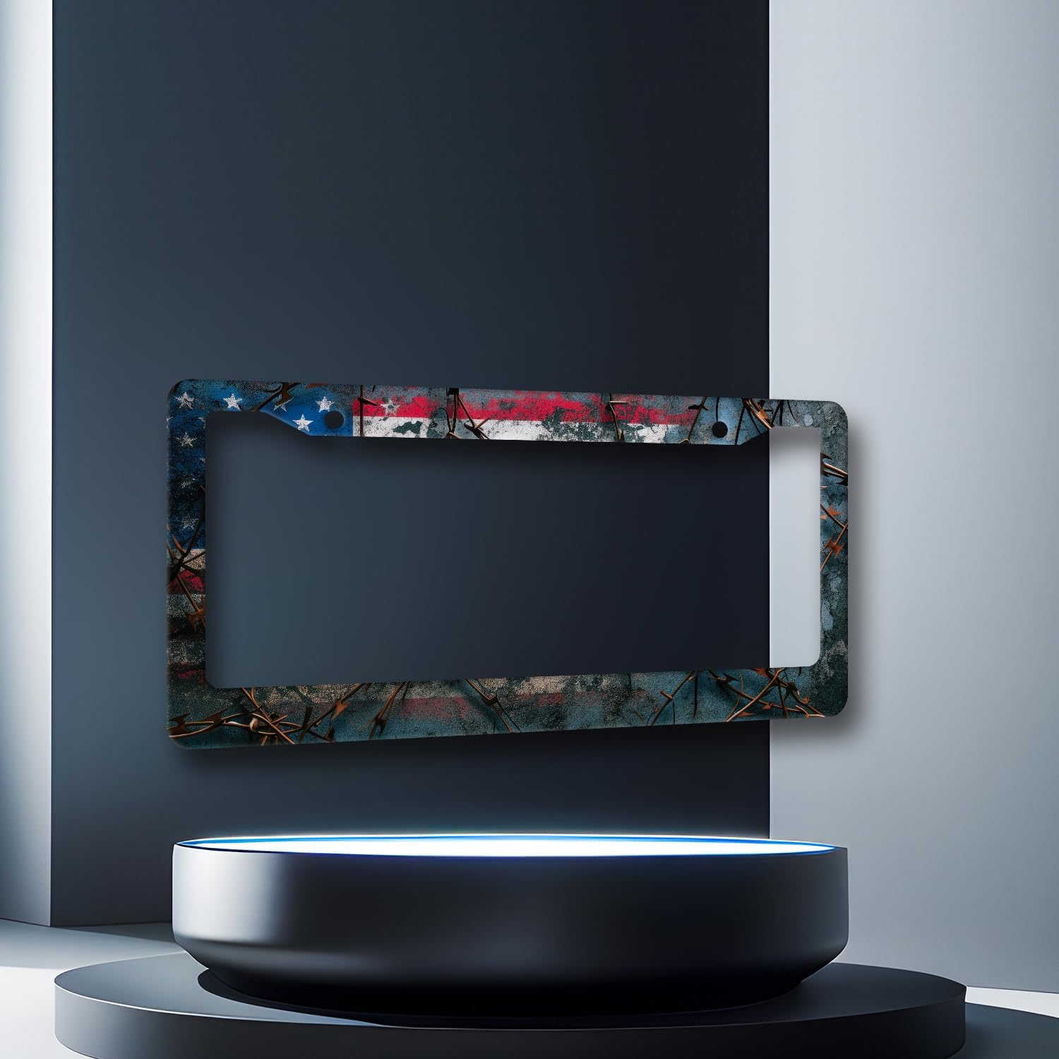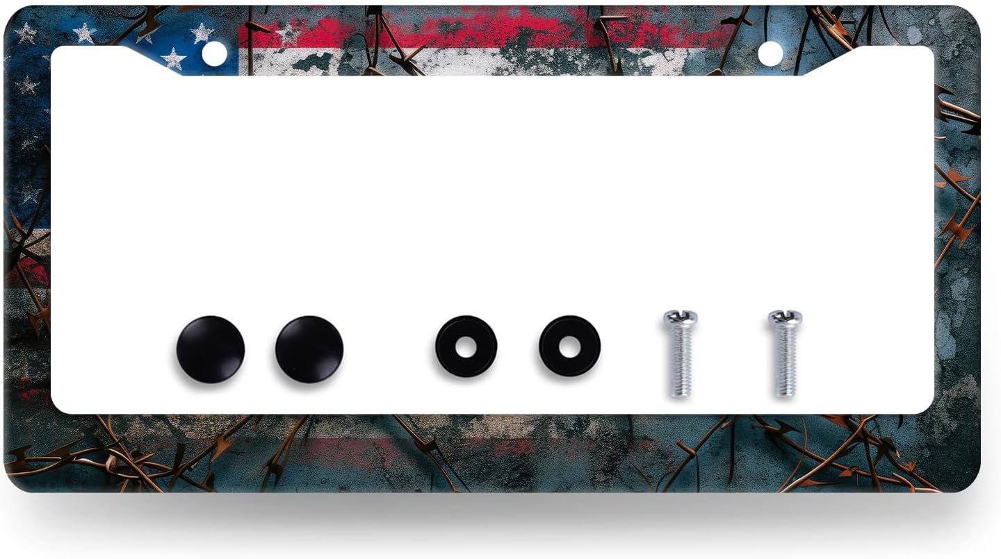 American Flag License Plate Frame Patriotic USA License Plate Holder Stainless Steel Funny Design with 2 Holes and Screws 12.3" x 6.3"