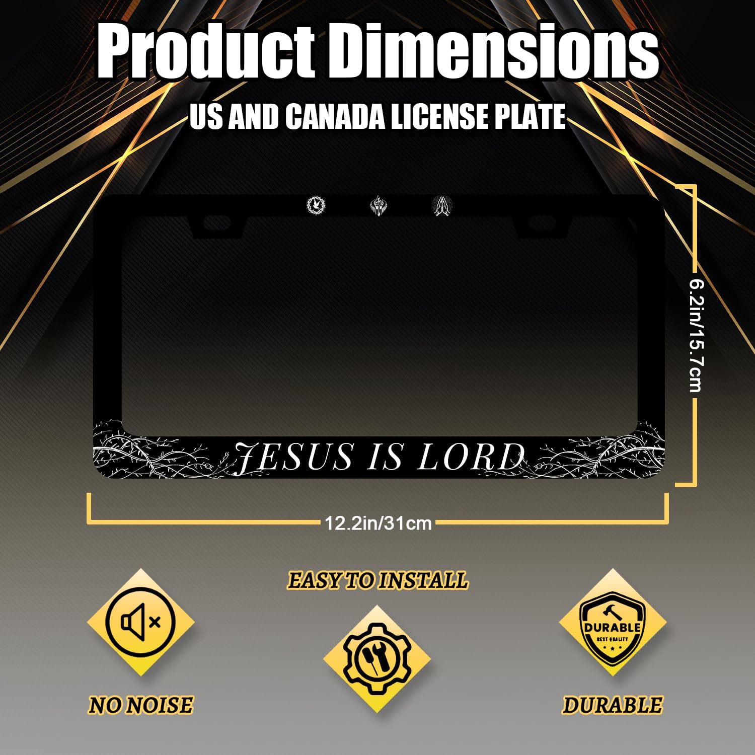 Jesus is Lord License Plate Frame Christian License Plate Holder Stainless Steel Funny Design with 2 Holes and Screws 12.3" x 6.3"