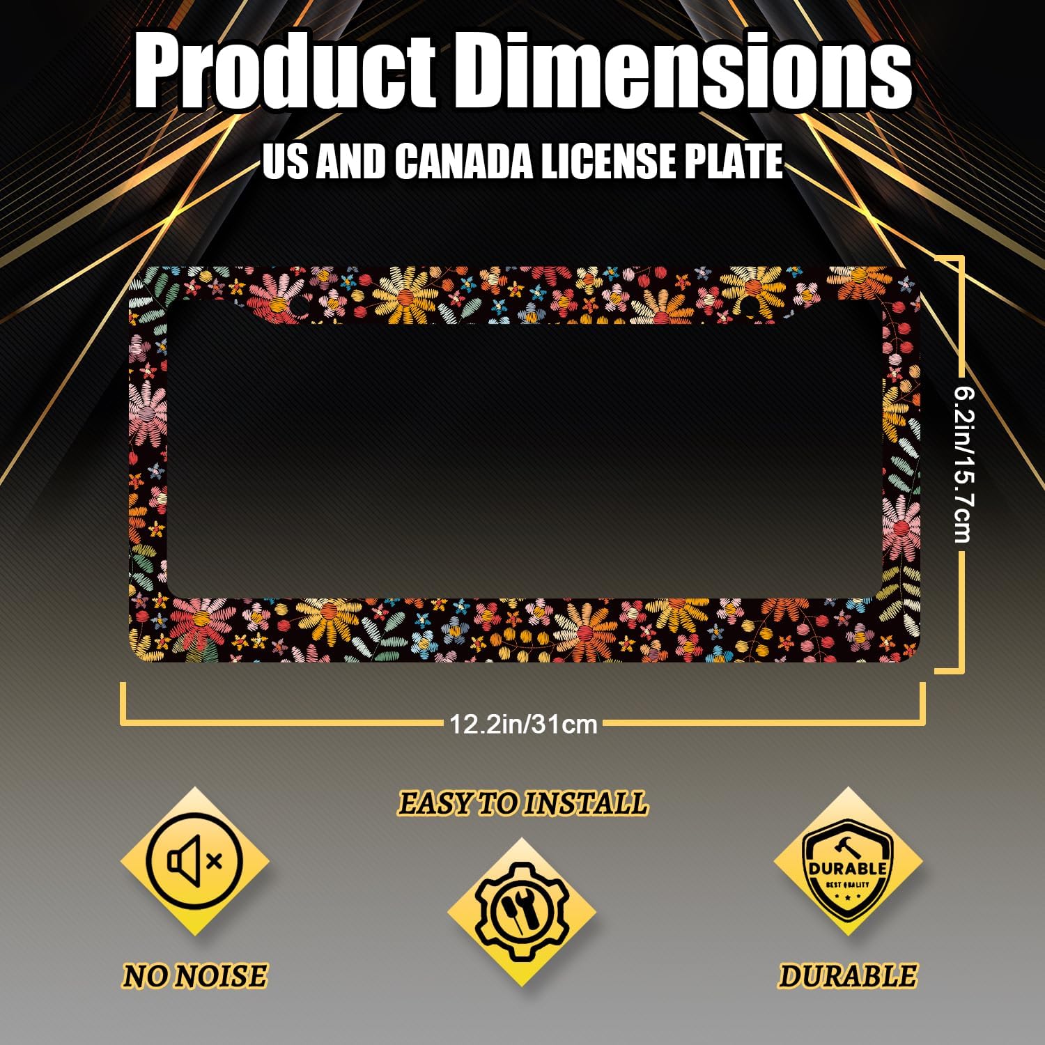 Beautiful Flowers License Plate Frame Colorful Floral License Plate Holder Stainless Steel Flower Colorful Car Accessories Decoration 6.3"X12.3" with 2 Holes Screws