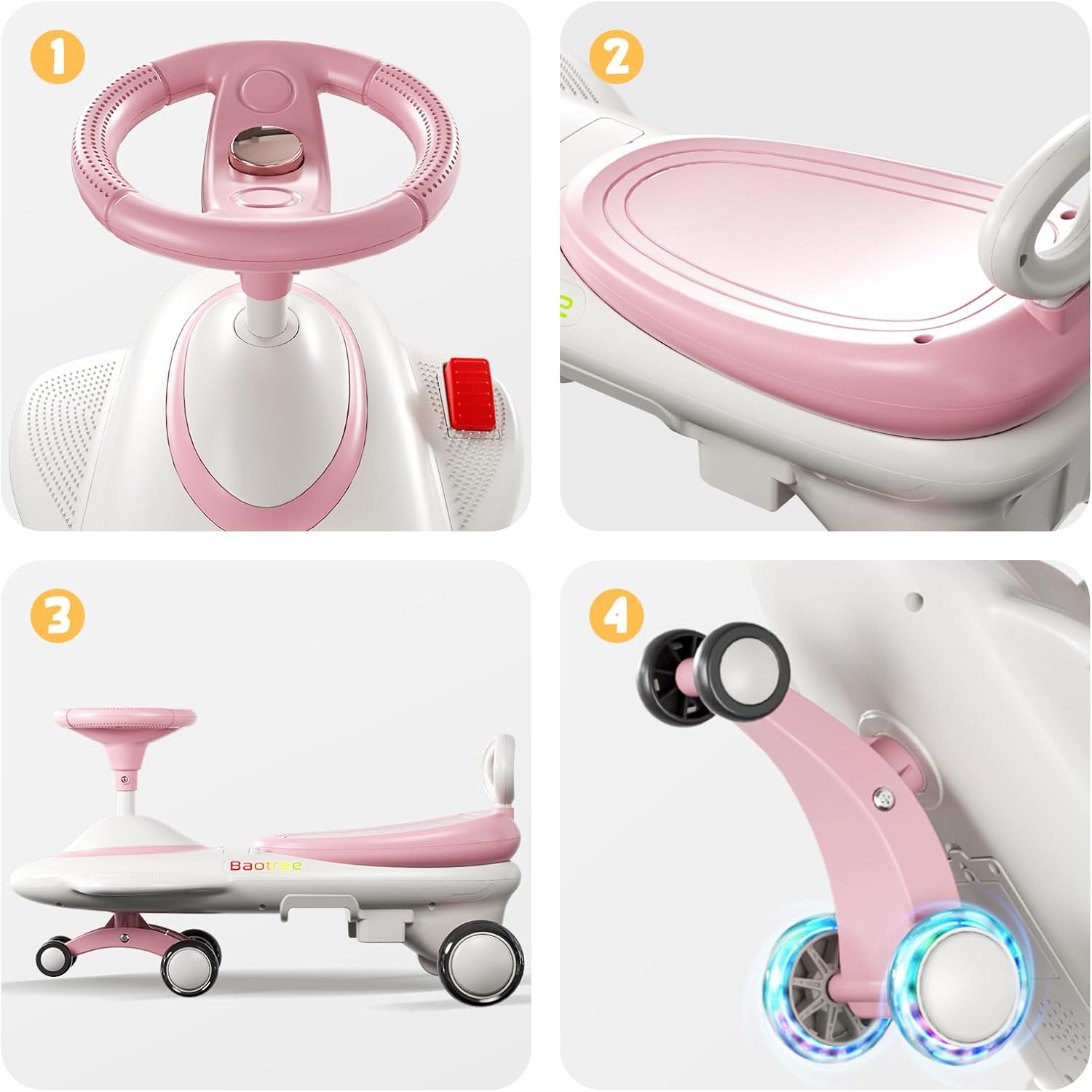 Kids Electric Ride On Car 12V - Electric Wiggle Car with Rechargeable Battery, LED Lights & Music,Anti-Rollover for Boys Girls Ages 3-8, Indoor/Outdoor Toy Vehicle up to 150 lbs