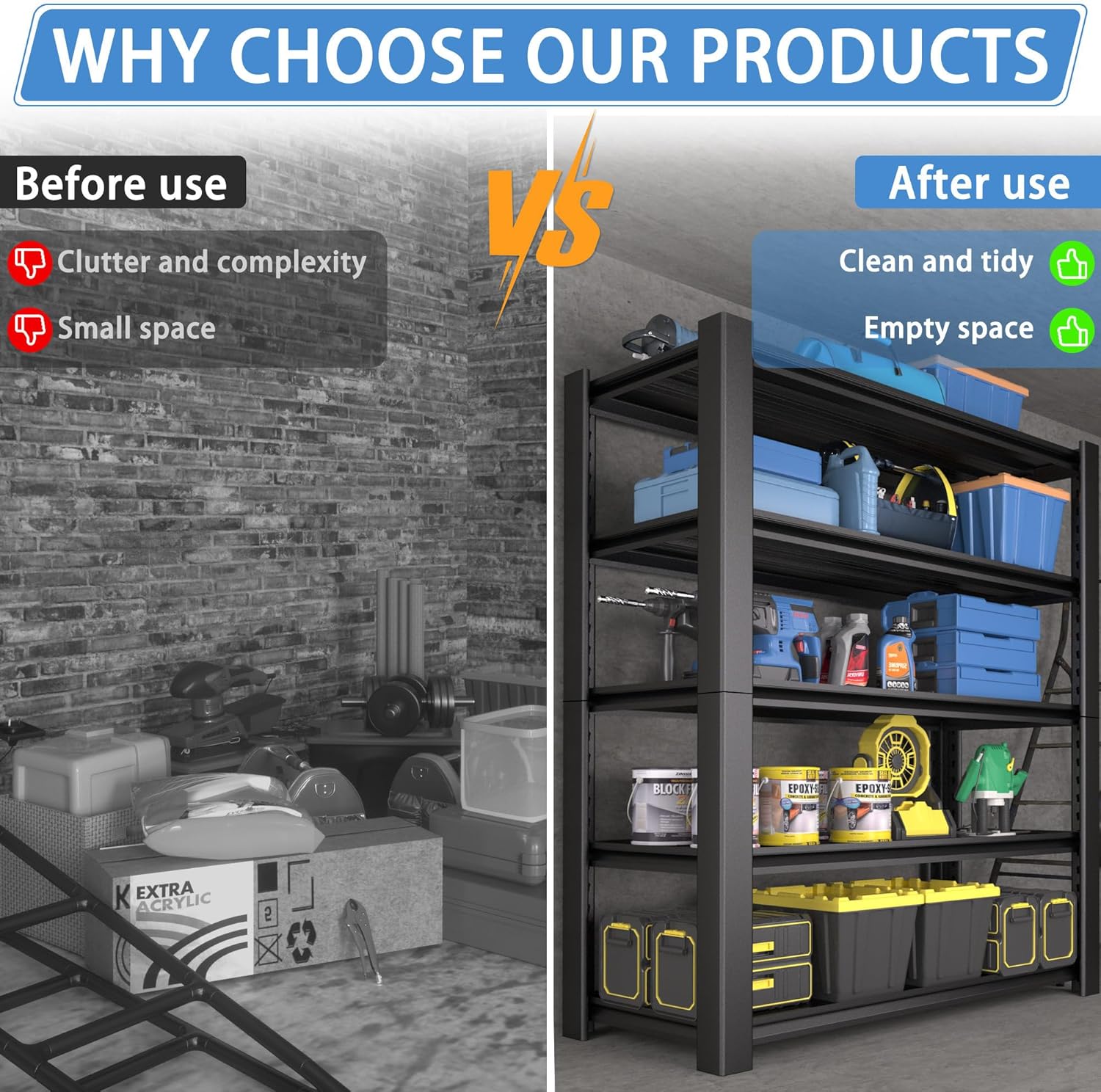 - Versatile for Any Space & User: This metal shelving unit declutters and organizes any area where you need storage. It's ideal for the garage, workshop, basement, pantry, utility room, or warehouse β holding tools, supplies, and household items with ease. Perfect for DIYers, mechanics, homeowners, renters, and handymen seeking a dependable storage solution.