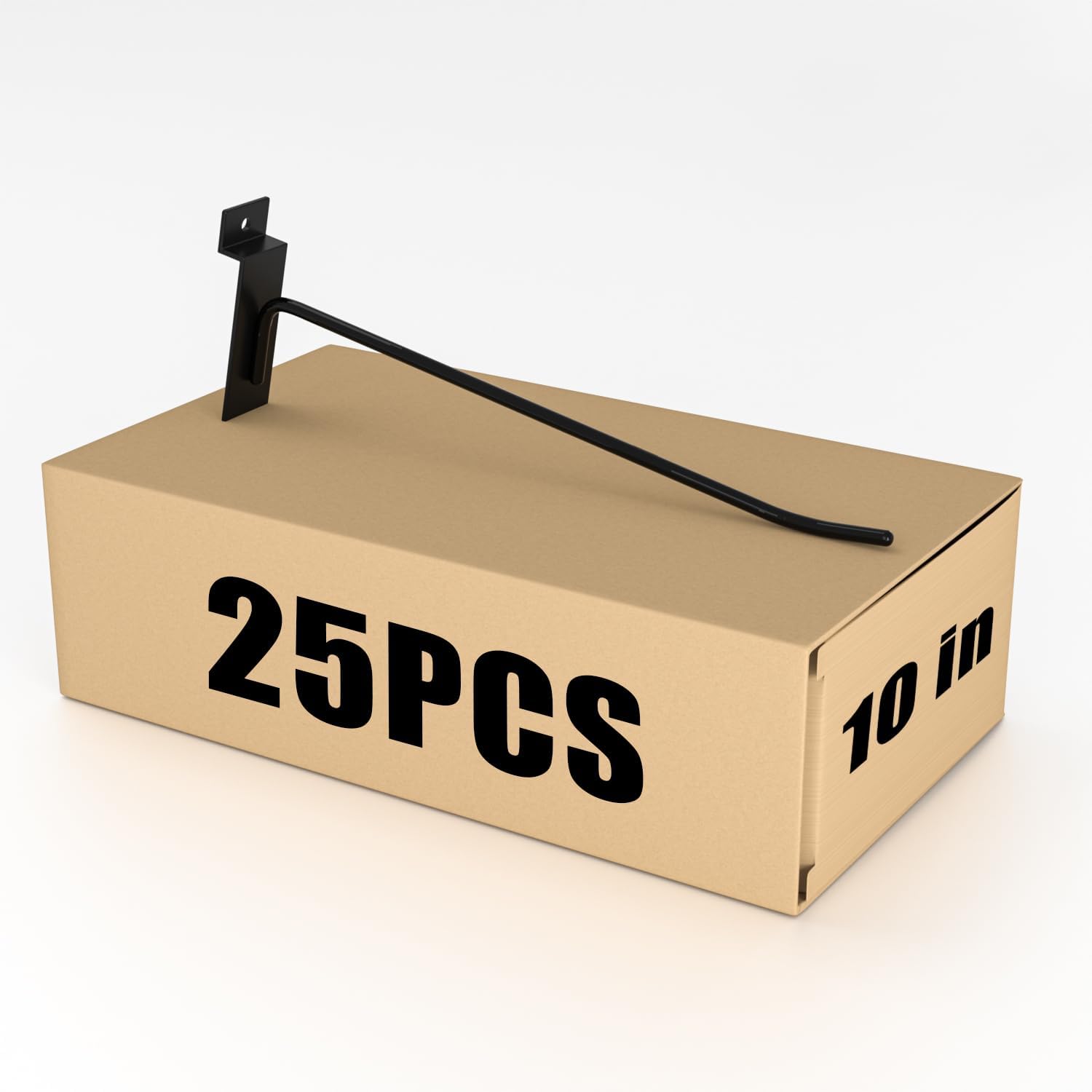 - PACKAGE CONTENTS: Set of 25 black slatwall hooks measuring 10 inches in length, perfect for versatile storage and organization needs
