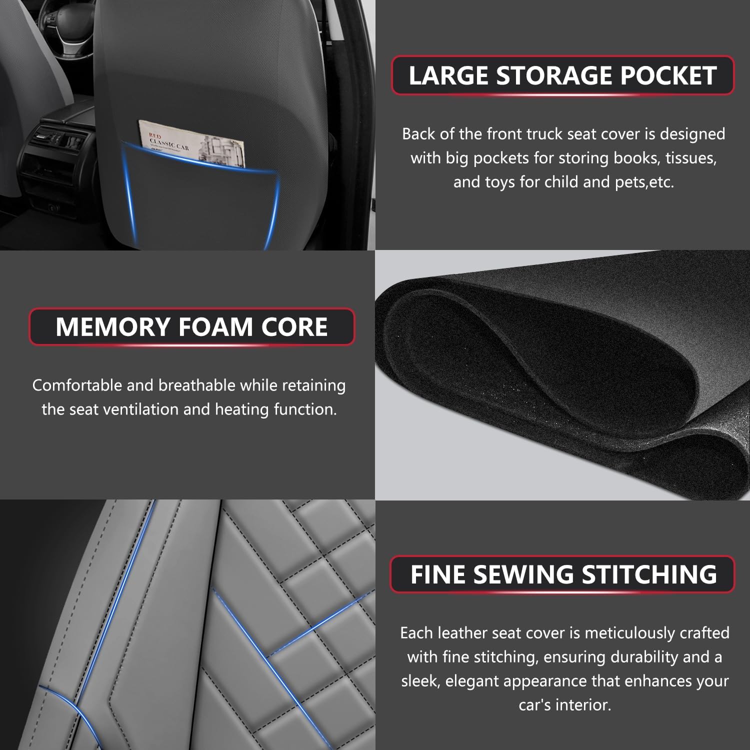 BABYBLU Chevy Chevrolet Silverado GMC Sierra Car Seat Covers Fit 2007-2023 2024 2025 1500/2500HD/3500HD (Grey, Full Set)