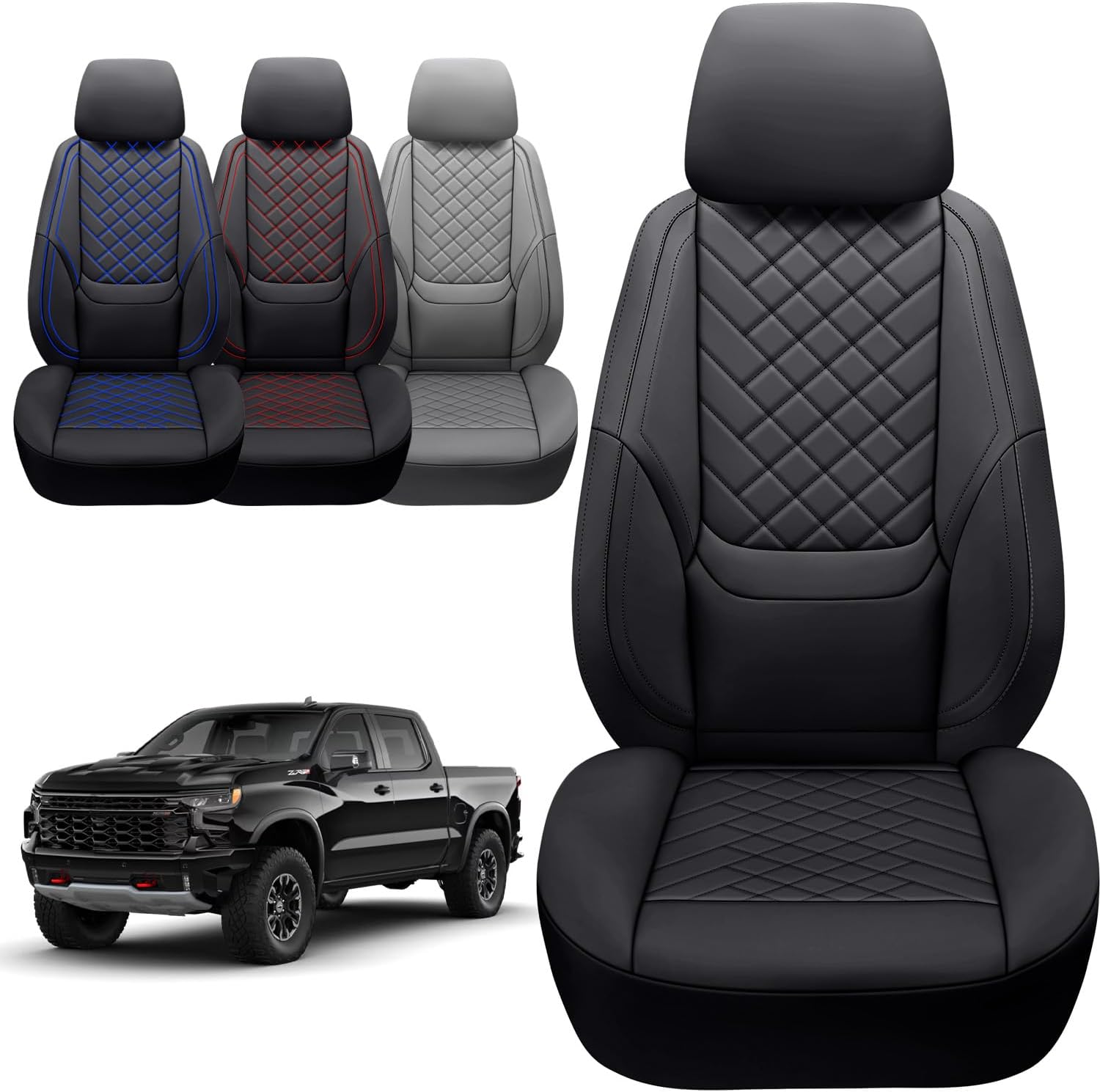 - Sierra waterproof front leather seat covers are perforated in the center, more breathable and stylish. Simple and unique 3D diamond design gives your old or scratched truck seats a new look while offering protection against accidental spills and moisture.