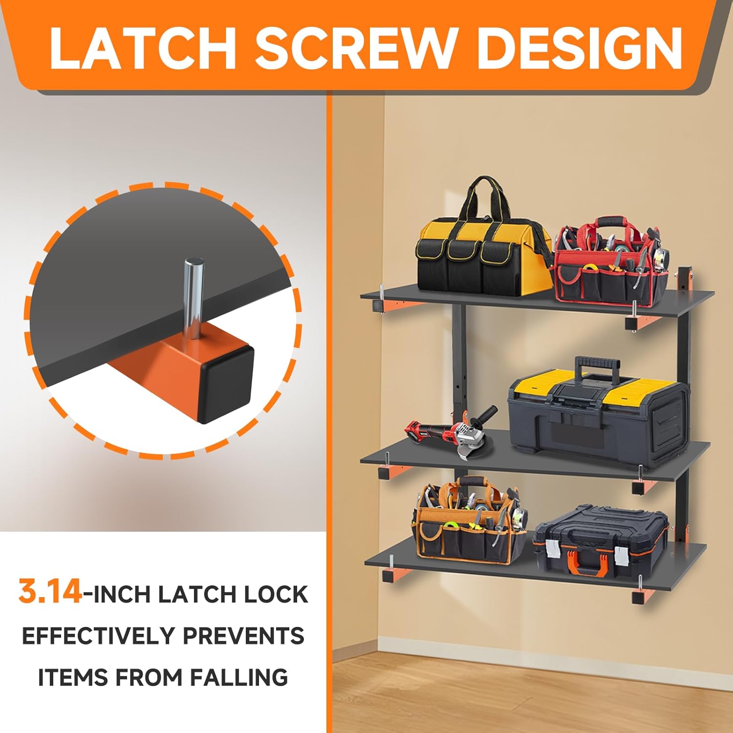 4 Pack Lumber Rack Wall Mount, Heavy Duty Wood Storage Racks, 6-Level System Organizer Shelving, 720 LBS Capacity Hanging Garage Shelves, Orange Brackets Utility Metal Shelf for Indoor and Outdoor