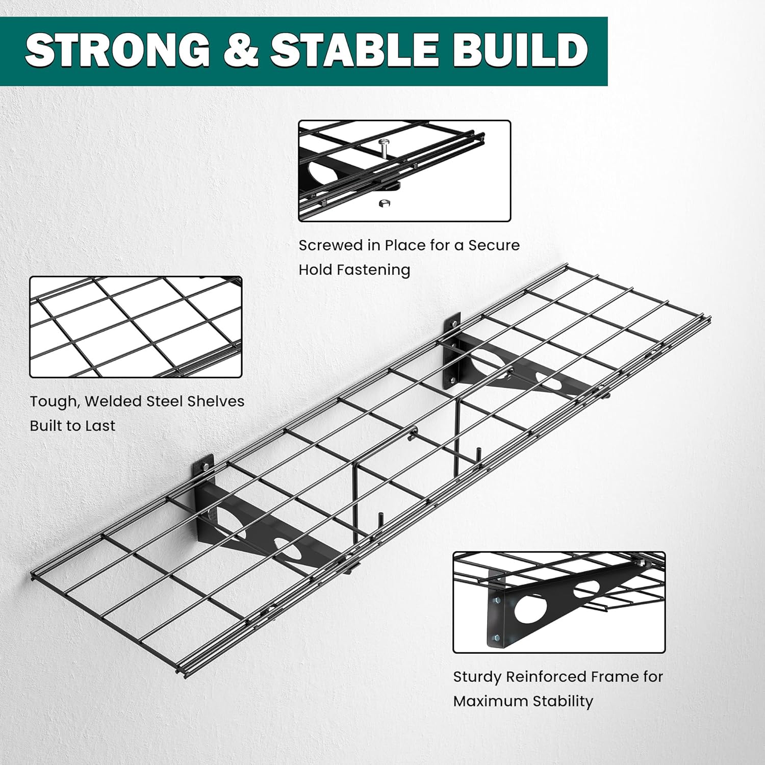 - EASY TO INSTALL: Designed for convenience, this garage wall shelf includes all necessary hardware and clear, step-by-step instructions. No complicated tools required—just a quick, hassle-free setup to get organized fast