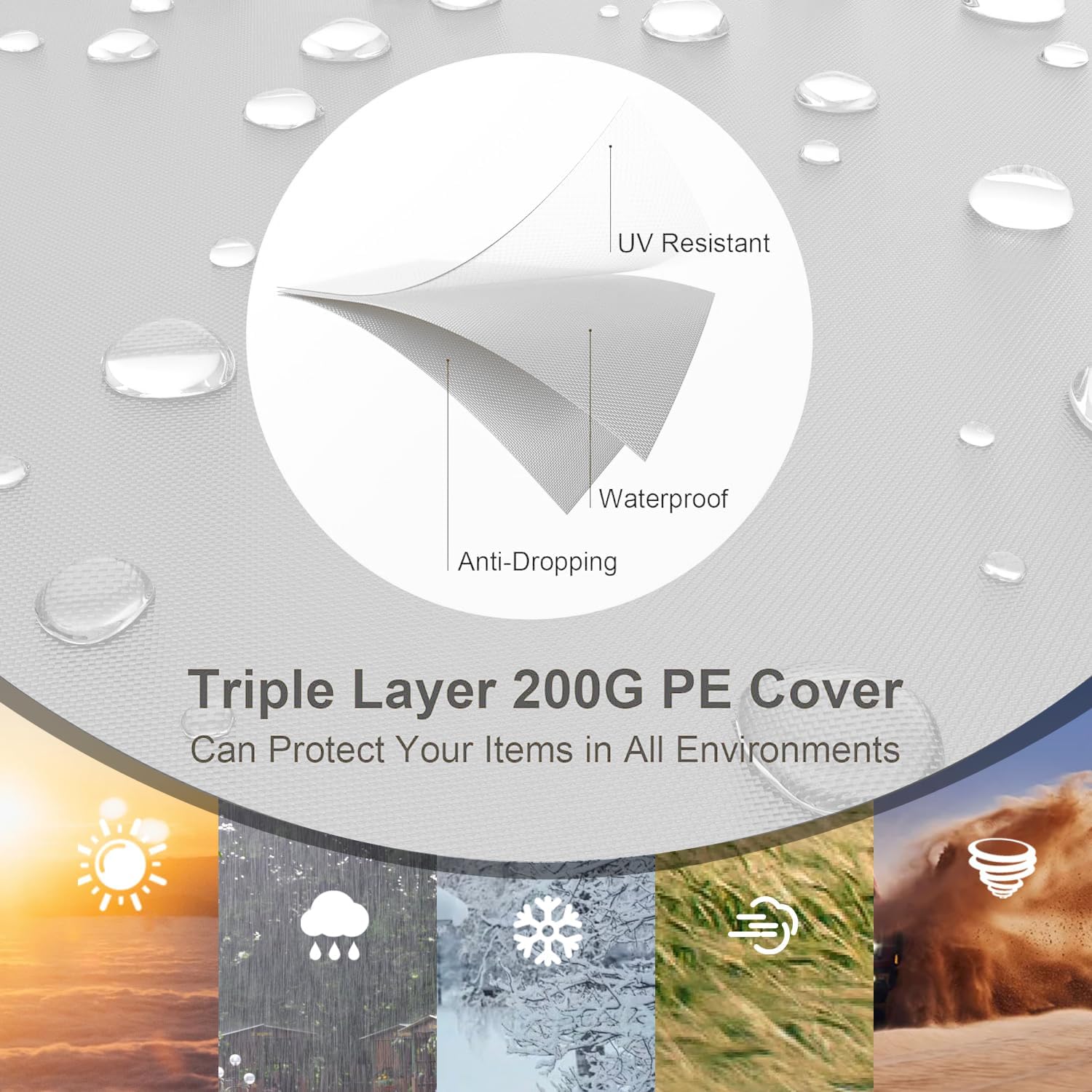 - Waterproof Fabric: 200g High quality Polyethylene top cover of carport provides resistance to wind and rain; Providing up to 200 square feet of UV protection, Blocks 90% of sun's rays