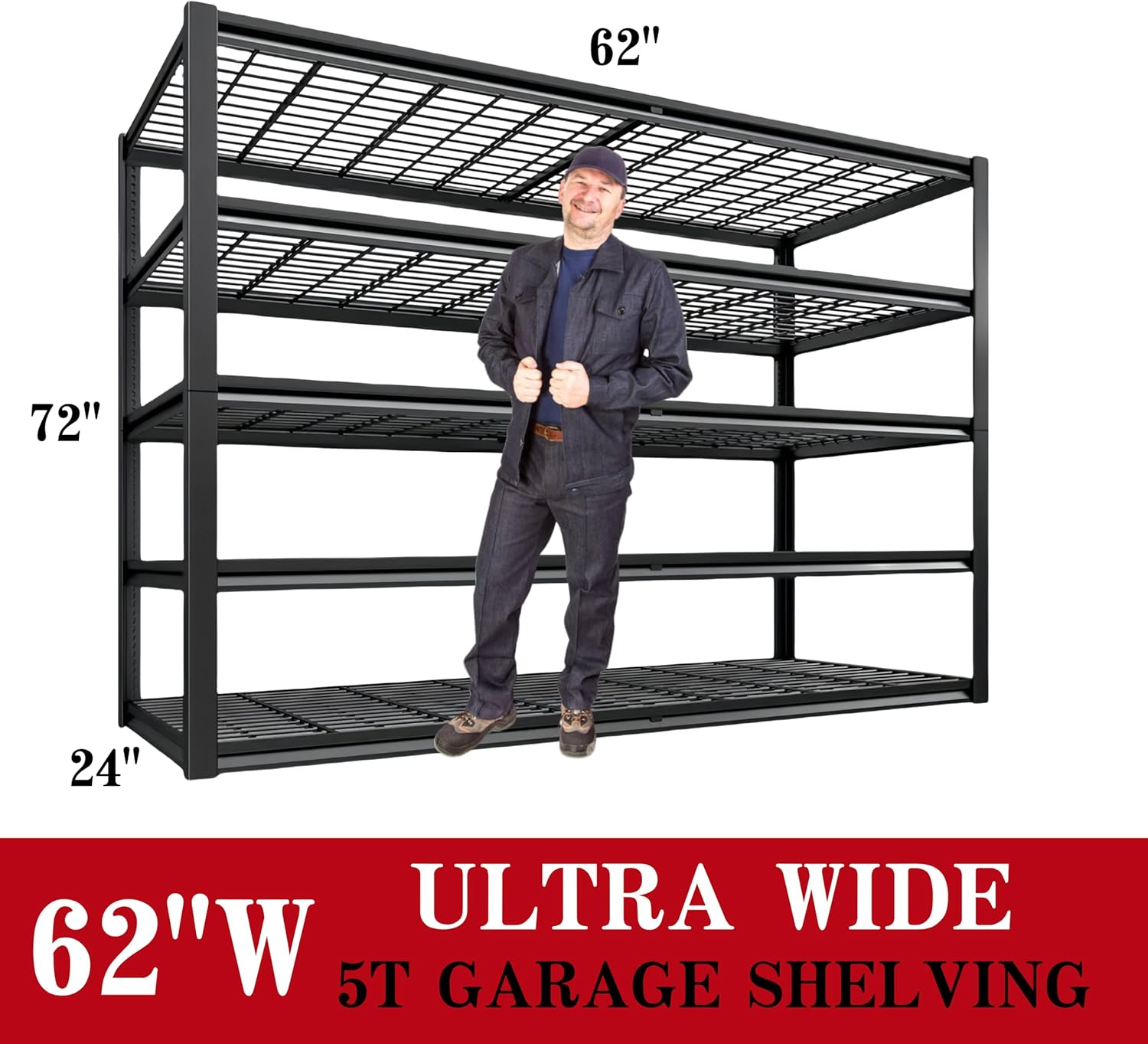 62" W x 24" D x 72" H Garage Shelving Heavy Duty Metal Shelving 3500LBS Storage Shelves Adjustable Metal Shelves for Storage Industrial Garage Shelves for Warehouse Basement (5T 72*62*24)