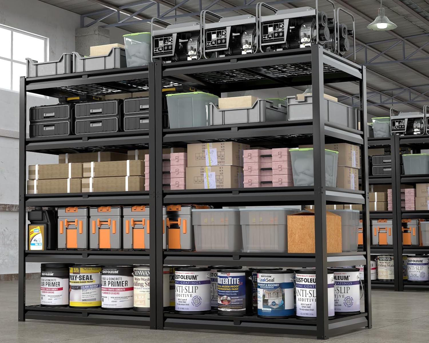 - ă36" W X 16" D X 72" H Garage Shelving offers Monster Storage Spaceă--PrimeZone garage shelving are composed of double-layer thickened heavy duty metal support posts and bolded metal wire net shelves. Each shelf add an additional middle support beam, which can greatly improve the stability and load-bearing capacity of the storage shelf unit. The heavy duty shelving has a load capacity of 550 lbs per tier, and a total load capacity of 2750 lbs for 5 tiers storage rack.