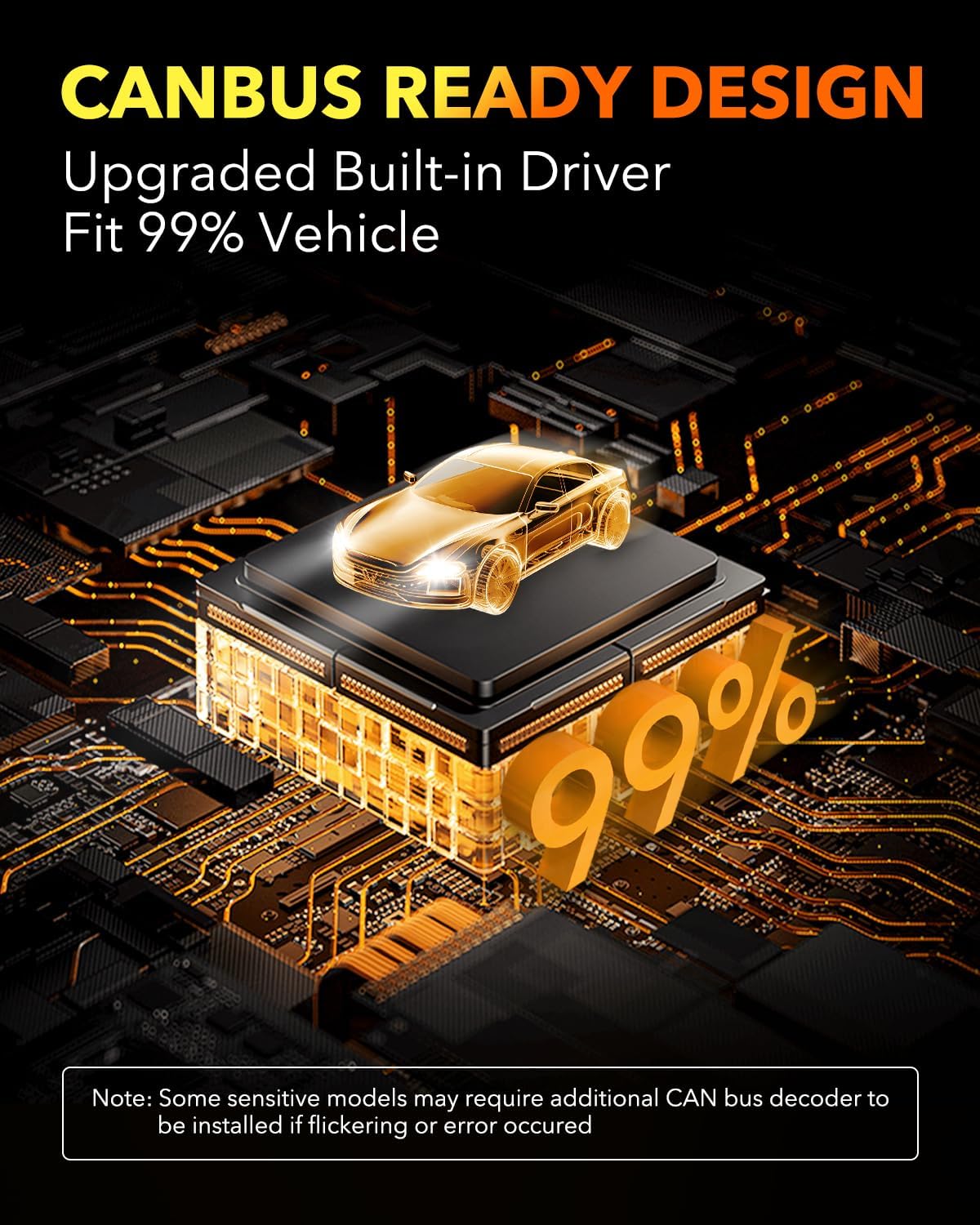 - ăAdvanced Compatibilityă â Built-in intelligent IC driver, no radio interference, CANBUS ready for 99% vehicle systems. Say goodbye annoying flickering and code errors when driving. Amazon filter system may not be 100% accurate, please check the user manual and the bulb size to verify the compatibility before purchasing.