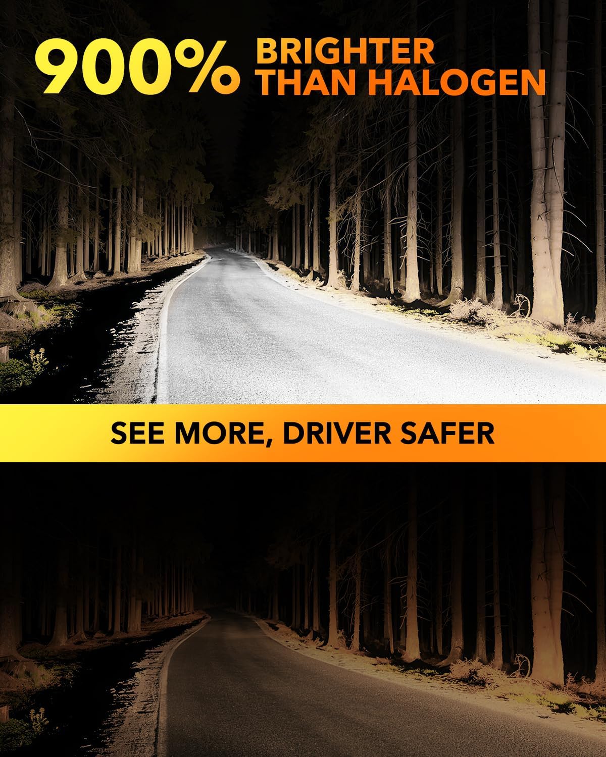 - ăOptimal Light Focusă: OXILAM H11 bulb features a revolutionary 0.03-inch ultra-slim design with precisely arranged chips for 360° shadow-free focused lighting. The upgraded optical system effectively eliminates glare to prevent disturbing oncoming traffic, while completely removing dark zones and shadows, delivering wider illumination coverage and longer visibility range than standard bulbs.
