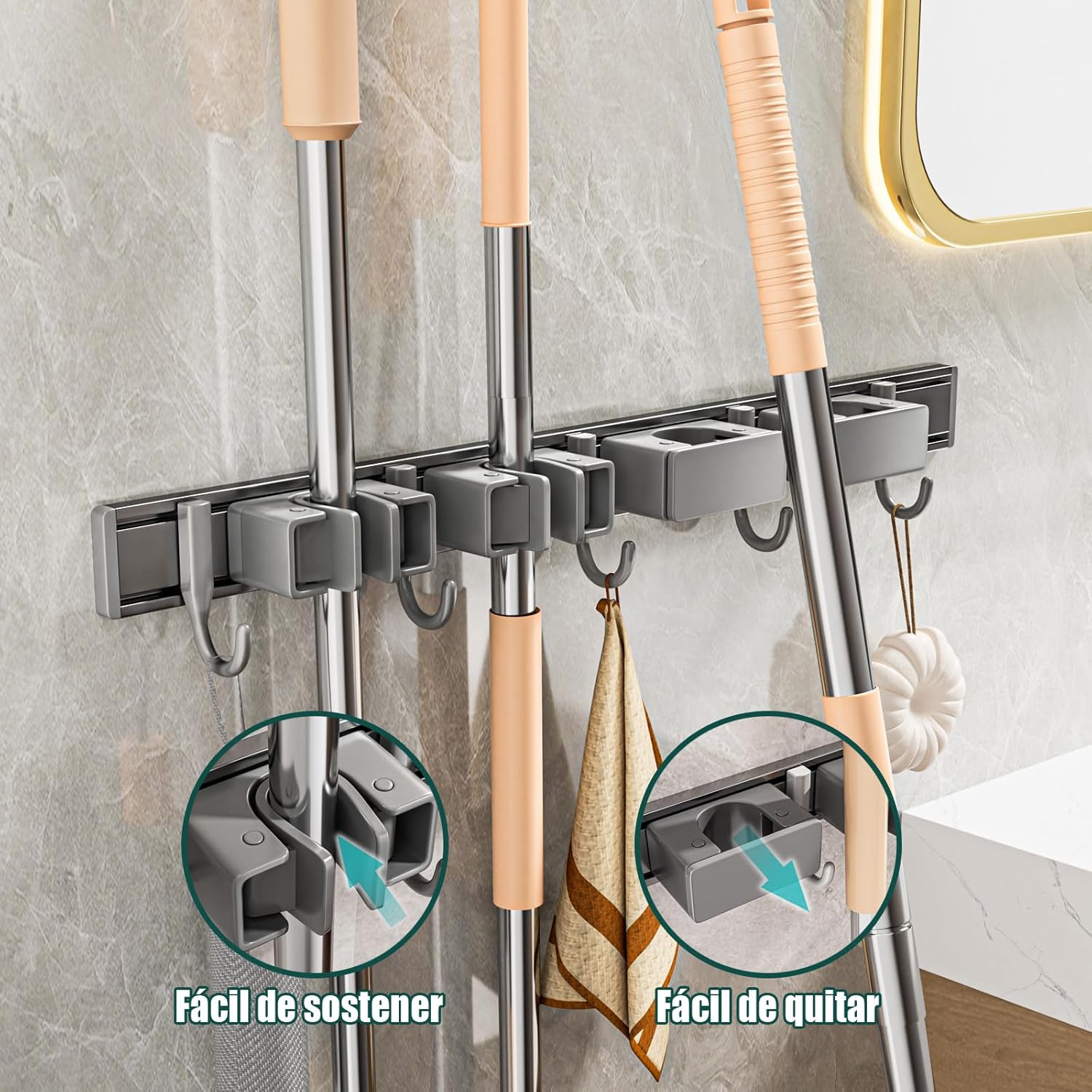 - 【Full wrap in rubber】Our broom and mop organizer wall hanging can store mops and brooms of many diameters. The non-slip rubber firmly wraps the mop and broom, protecting your tools from scratches while preventing them from falling.
