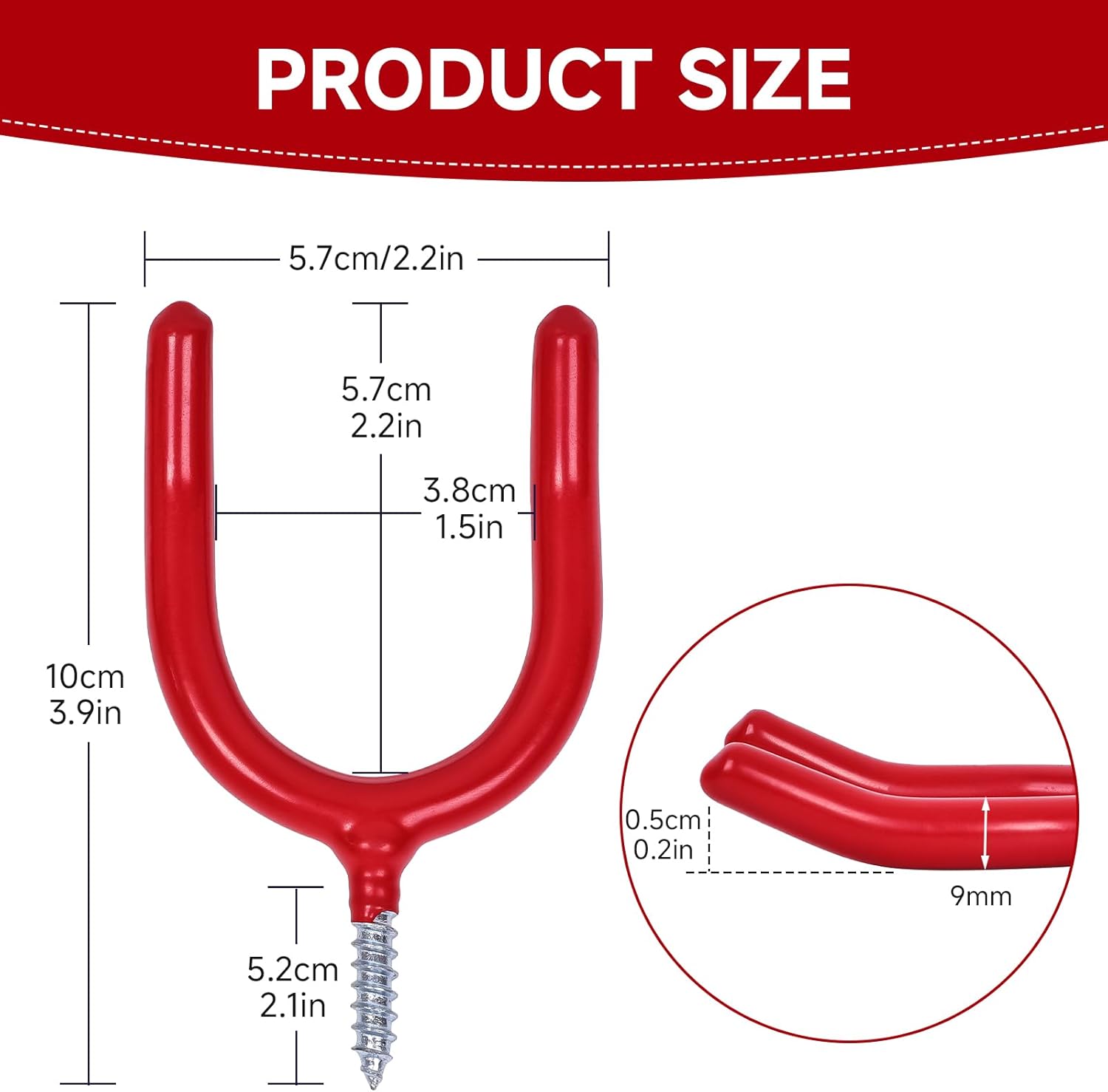 6 Pack Garage Storage System Steel U Hooks with Anti-Slip Coating Home Improvement and Organization Screw in Hooks Easy Wall Mounting Heavy Duty Bike and Ladder (Red, 6 Pack)
