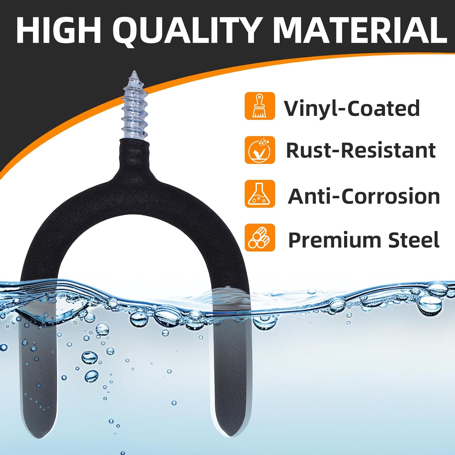 12 Pack Garage Storage System Steel U Hooks with Anti-Slip Coating Home Improvement and Organization Screw in Hooks Easy Wall Mounting Heavy Duty Bike and Ladder (Black, 12 Pack)