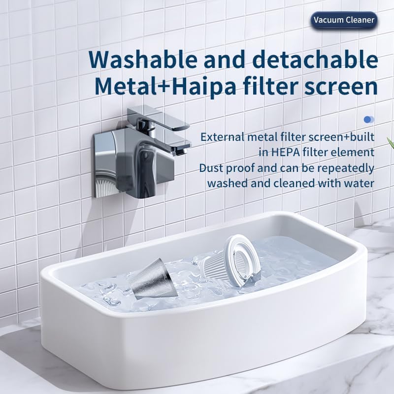 - HEPA Filtration System - Washable metal + HEPA filter traps 98% of micro-dust. Features a visible, easy-empty dust cup (note: body not washable).