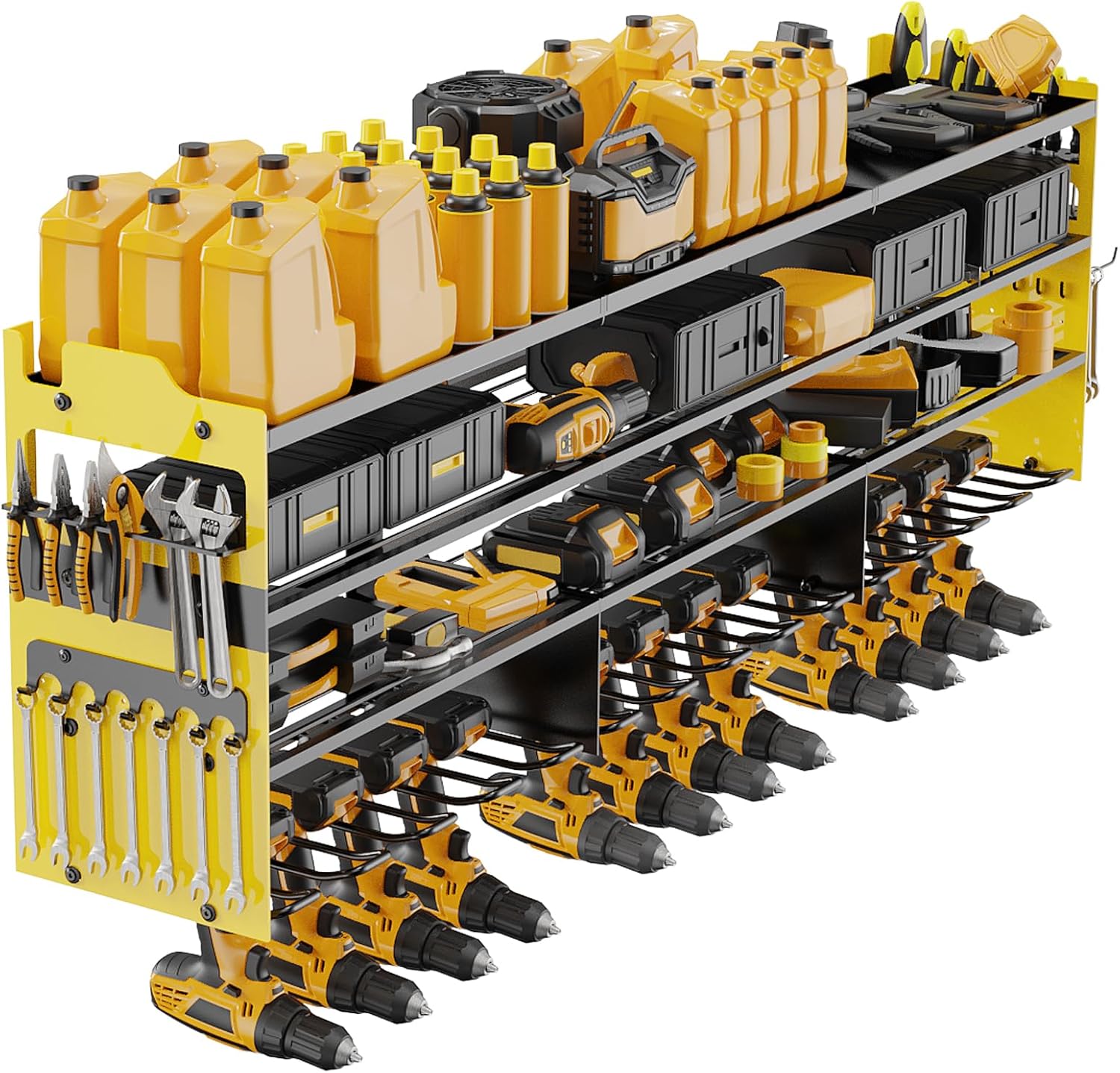 - 🔨【800 POUNDS LOAD】This heavy-duty power tool organizer is made of heavy-duty metal and protective coating,scratch-resistant, rust-resistant and anti-bending,no need to worry about the shelf breaking or falling off the wall. The wall mount design saves valuable floor space while keeping tools within reach,say goodbye to a messy workspace,put your tools all in a row.