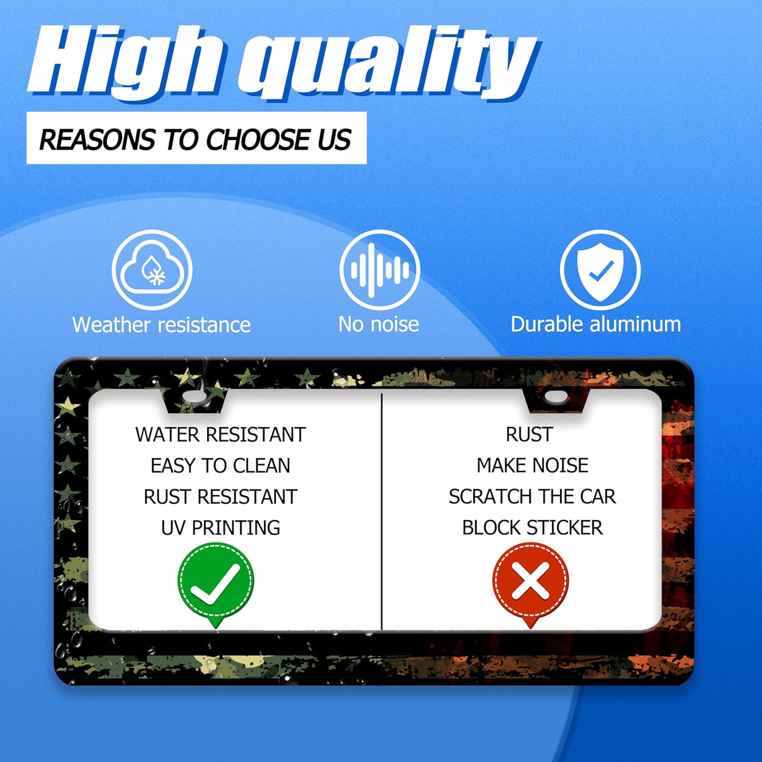 Camo License Plate Frame American Flag License Plate Stainless Steel Funny License Plate Holder for Men Women Colorful Car Accessories Decoration 12.3" x 6.3"