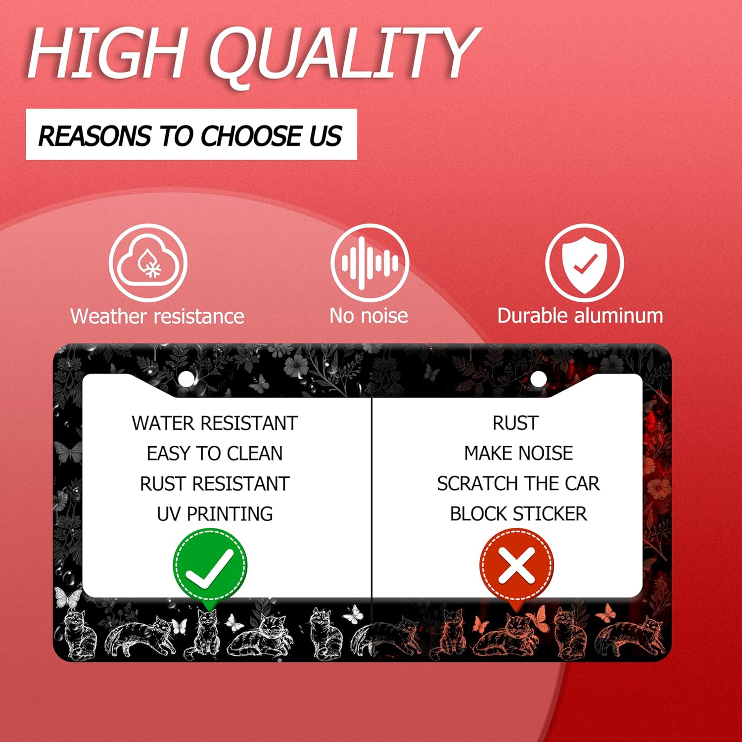 Black White Cat License Plate Frame Butterfly Floral License Plate Frames Funny Auto Accessories Bracket Stainless Steel License Plate with Screws 6x12Inch