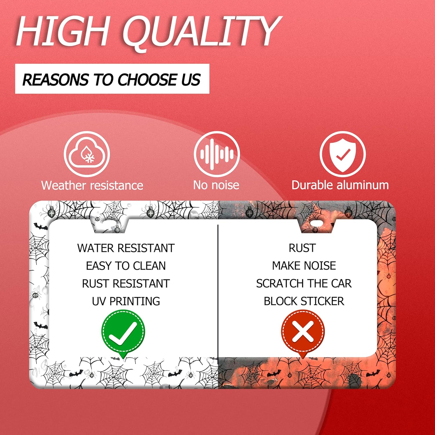 Personalized Bats License Plate Frame Spider Web License Plate Frames Funny Auto Accessories Bracket Stainless Steel License Plate with Screws 6x12 Inch