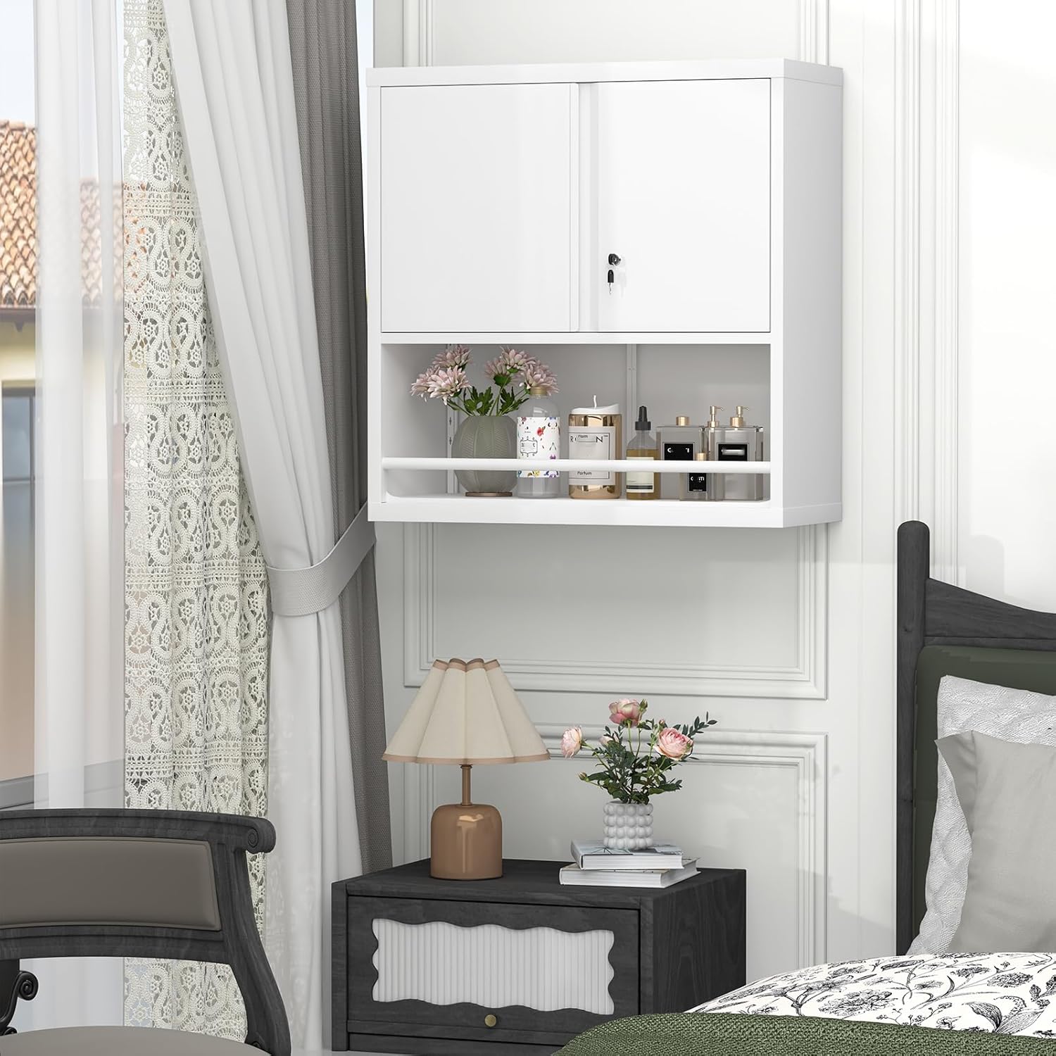 - 【Space-Saving Design】Featuring a wall-mounted design, this lockable hanging storage cabinet saves space and keeps your room tidy.