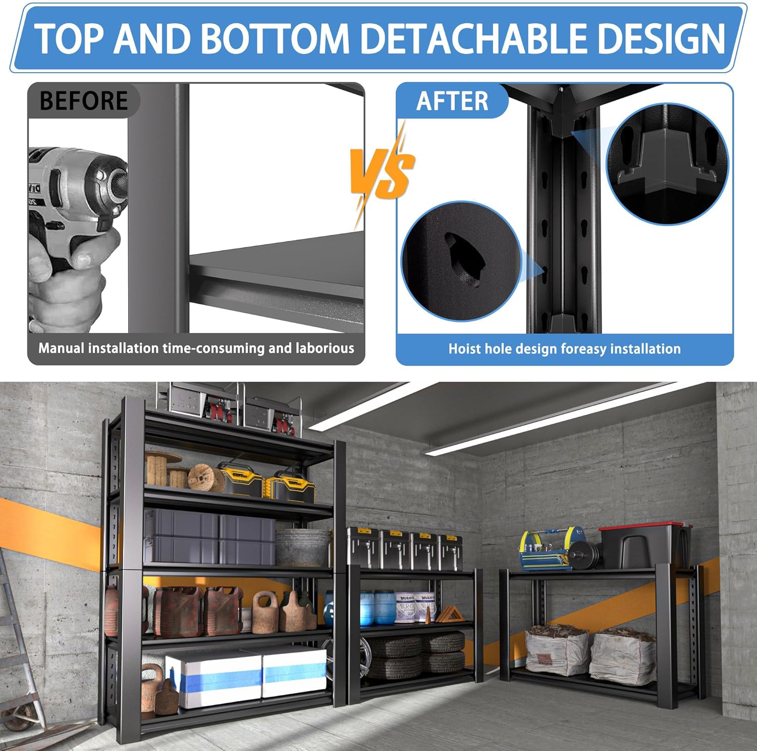 - Heavy-Duty Steel Construction & High Capacity: Built with industrial-grade metal, the Nexvrtau shelving unit supports extreme loads on each of its 5 tiers. The heavy-duty steel frame and reinforced beams provide stable storage for tools, equipment, and bins β perfect for garages, warehouses, or any space demanding reliable strength.