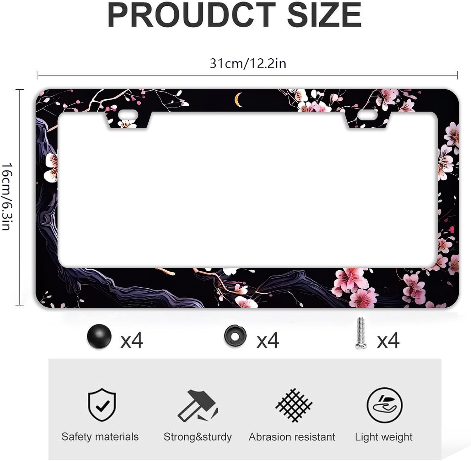 • 【Standard Frame Size】:License plate frame suitable for Us and Canadian standard vehicles size 6.3" x 12.2"(16cm x 31 cm) license plate.fits most trucks, cars,garages.