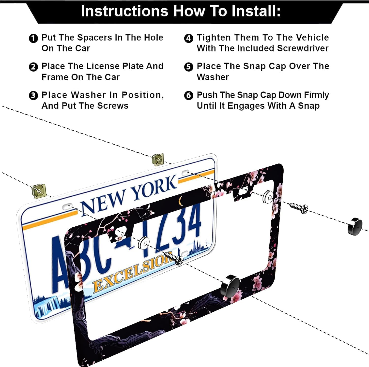 • 【Easy To Install】:Our license plate frame all accessories needed are included 2 Pcs (4 Screw Caps, 4 Screws, 4 Washers).Quick and simple installation with easy to follow instructions.Easy to clean, just wipe with a damp cloth.2 Pcs set, front and back installation is more fun!