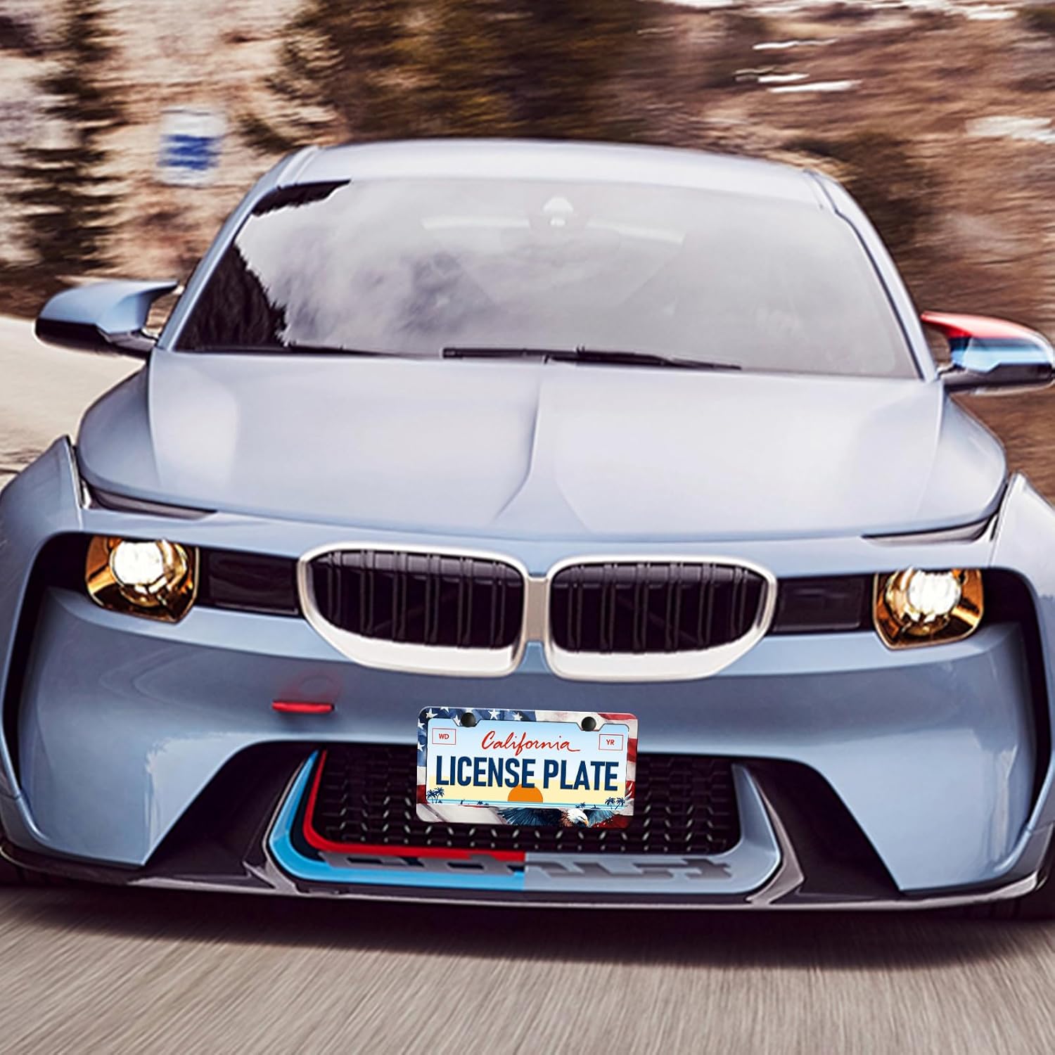 American Flag Eagle License Plate Frames - 2 Pack US Flag Patriotic Stainless Steel License Plate Holder,Rust-Proof Waterproof Car Decorative Tag Frame with Screws Fasteners Caps