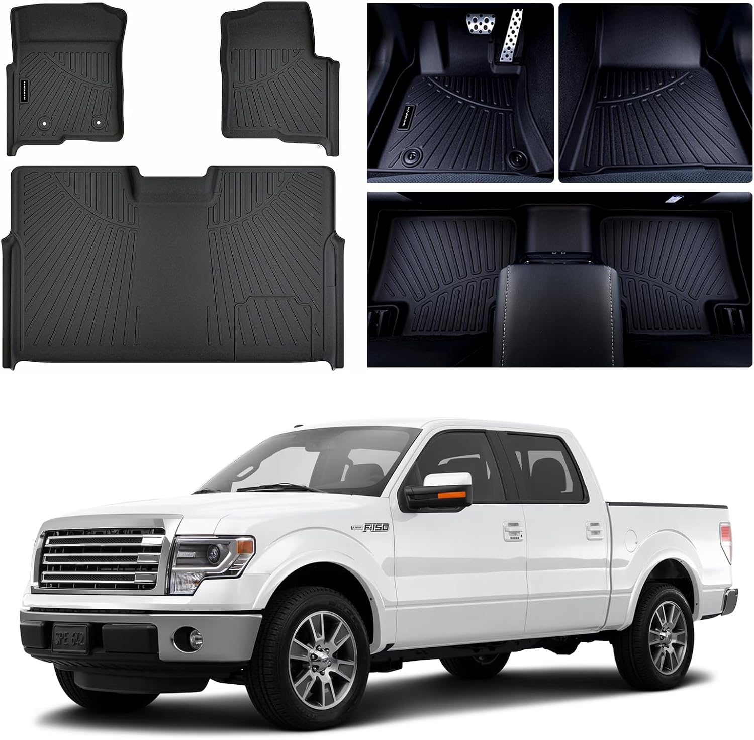 - 【CUSTOM FITMENT】Precision-Tailored Protection:3D laser-scanned to fit 2010-2014 Ford F-150 SuperCrew Cab (excl. manual transfer case shift) with edge-to-edge coverage, matching OEM floor contours perfectly.