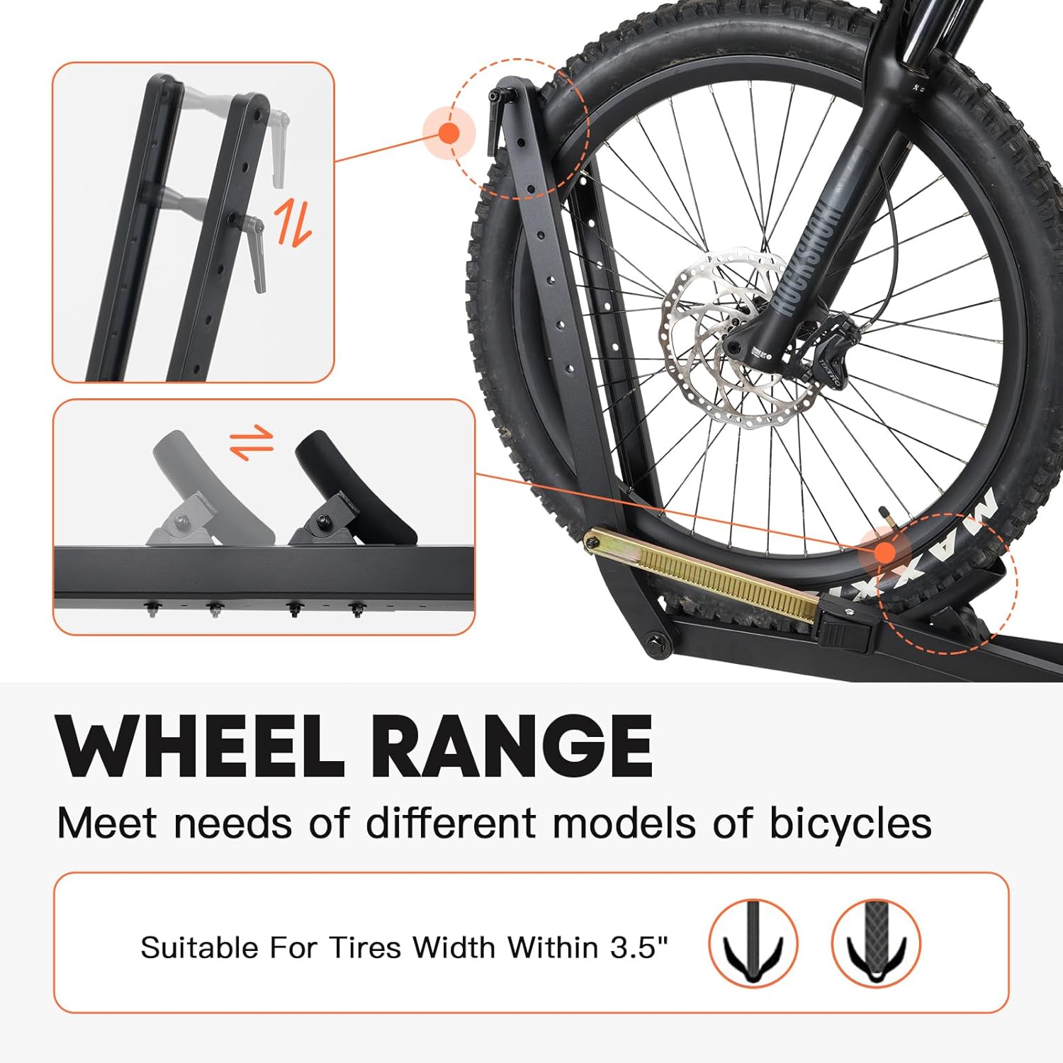 - Add-on kits: The 1-bike kit MagRack XA expands the MagRack X1 into a 2-bike rack, supports up to 150 lbs, designed to fit any vehicle with a 2-inch receiver. It accommodates electric bikes with a maximum tire width of 3.5 inches and a wheelbase up to 52 inches