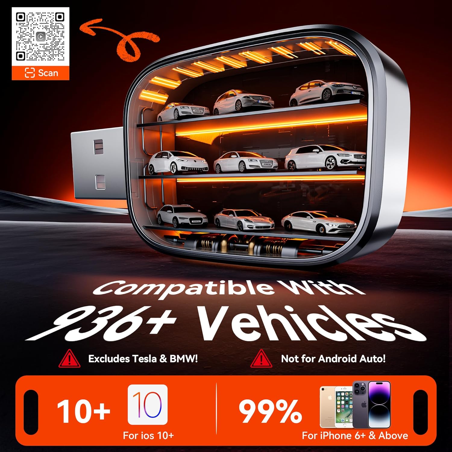 - ăUnbreakable Wireless Stabilityă Military-grade anti-shock design ends cable hassles â no broken connectors from bending or rough-road disconnects. Auto-activates instant wireless CarPlay on engine start (even in compartments). Smart power management preserves phone battery. Avoid port damage from daily plugging/unplugging and "forgotten phone" issues.