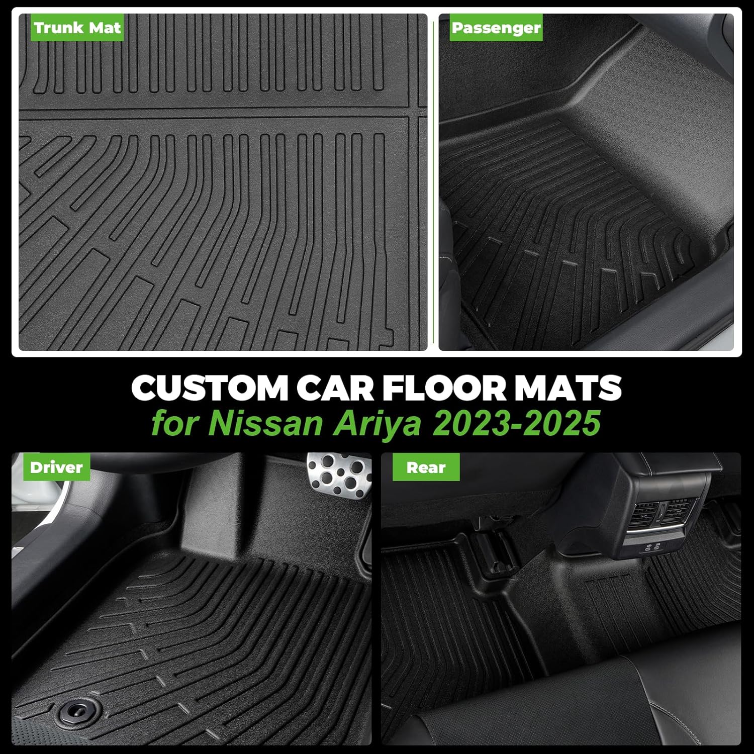 - 【All-weather Protection】Nissan Ariya 2023-2025 all-weather floor mat are not easily deformed or broken even in cold weather. The ergonomically designed channels and raised edges effectively capture liquids, sand, snow, etc., and protect the vehicle floor well. Bringing you a safer and more comfortable in car environment.
