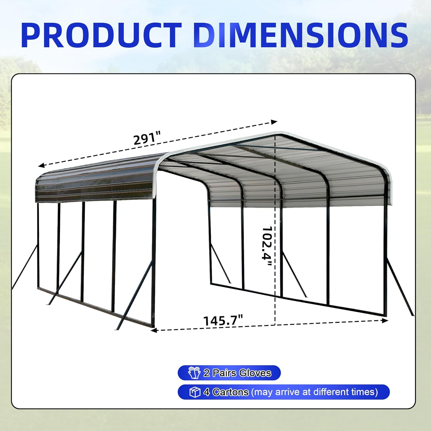 • VARIOUS OVERSIZED SIZES: Carport L x W x H: 145.7x 102.4 x 291inch to park any boat, car, tractor and farm equipment. Meet your storage needs!