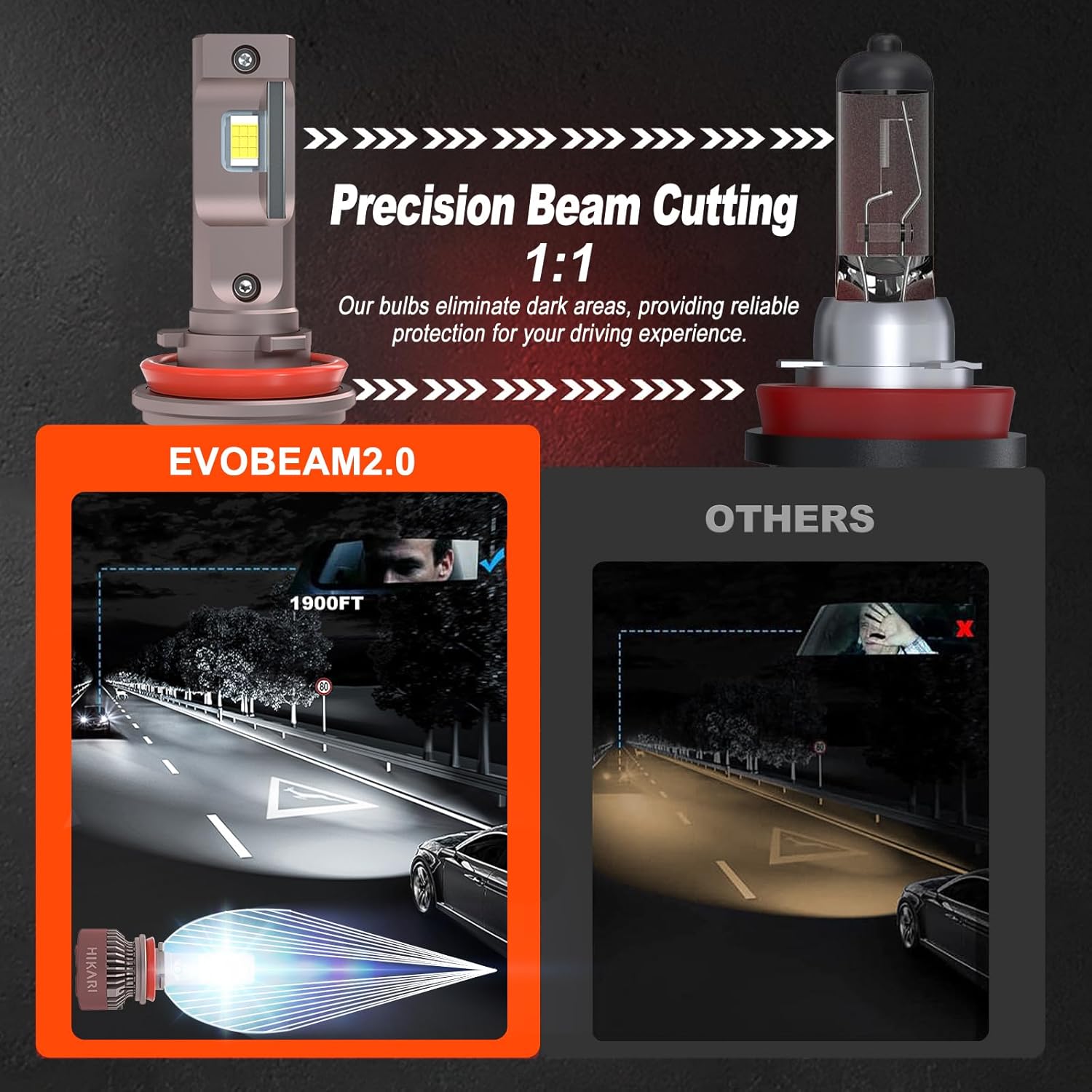 - 【Pure White & Extended Reach】: HIKARI Darkenex LED bulbs, featuring the advanced Evobeam2.0 chip, deliver 40,000 lumens of crisp 6000K light, illuminating up to 1900 feet ahead, making them suitable for use in rainy and foggy weather.