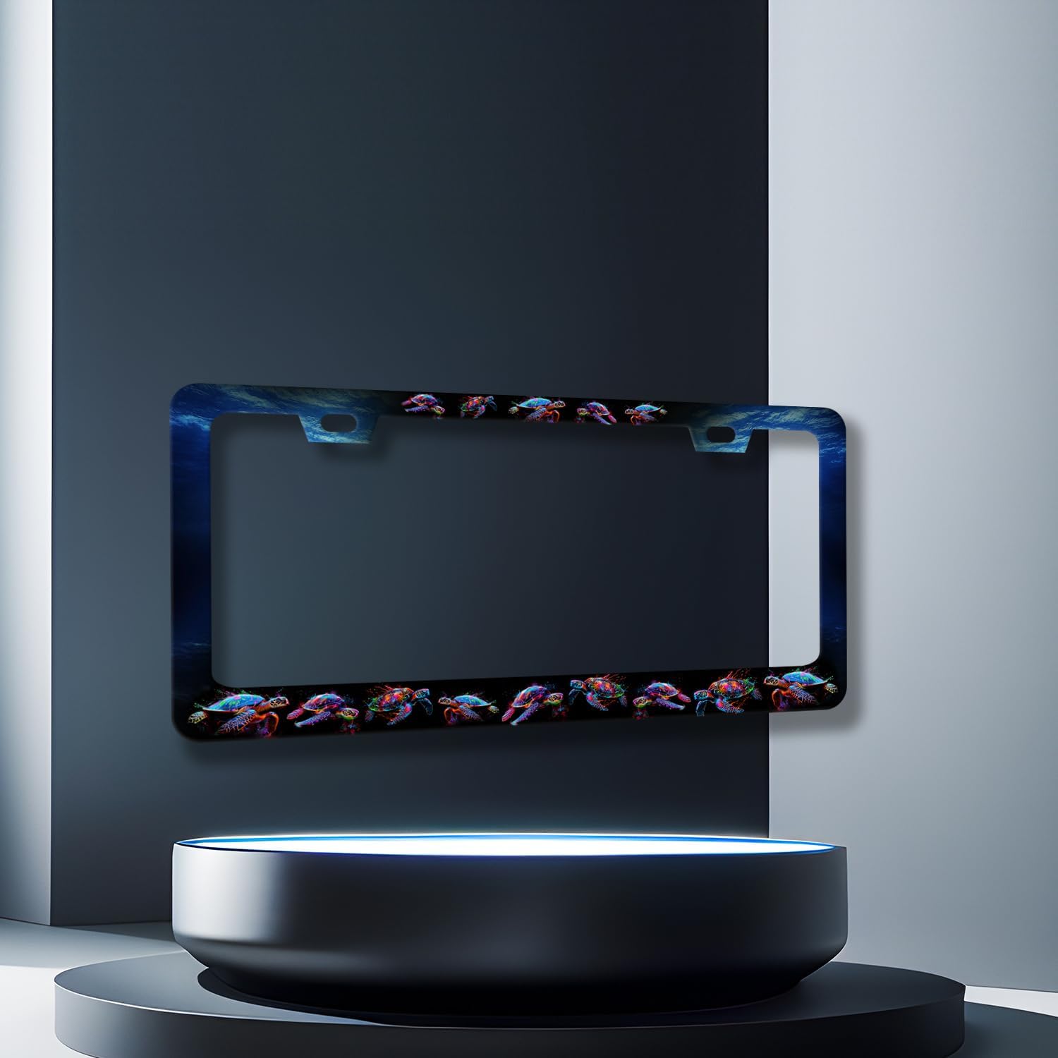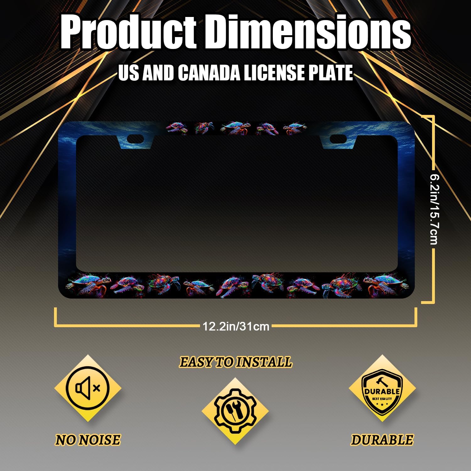 Sea Turtle License Plate Frame Blue Turtles License Plate Stainless Steel Ocean Animals Funny Accessories Cars Decor 12.2 X 6.2 Inch with 2 Holes and Screws Fits Standard Us Ca Vehicles