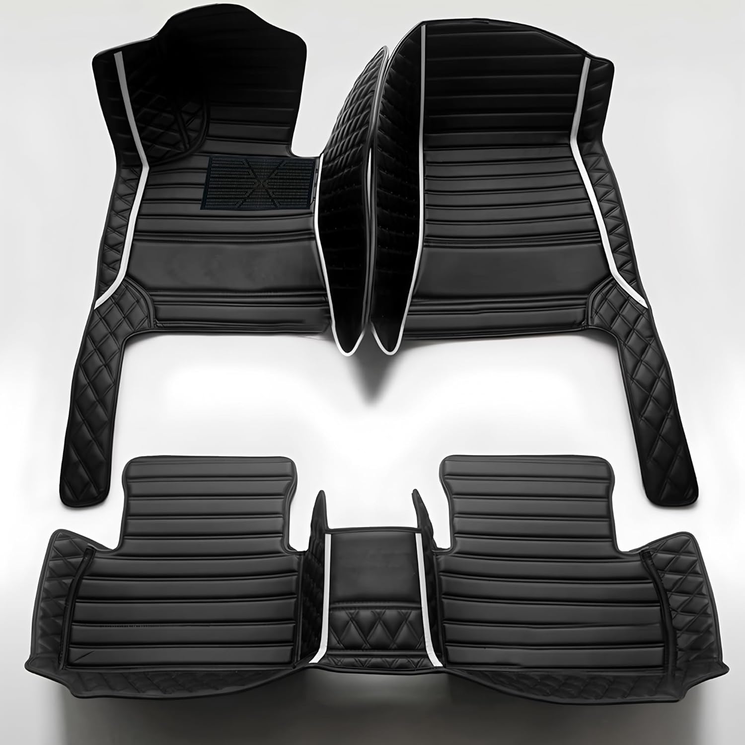 Custom Personalized Floor Mats for Cars,Luxury Full Coverage All Car Floor Mats,Anti-Slip Leather Car Mat Set ,Custom Floor Mats for 99% of Cars, Trucks & SUVs. (Black Dual Tone and White)
