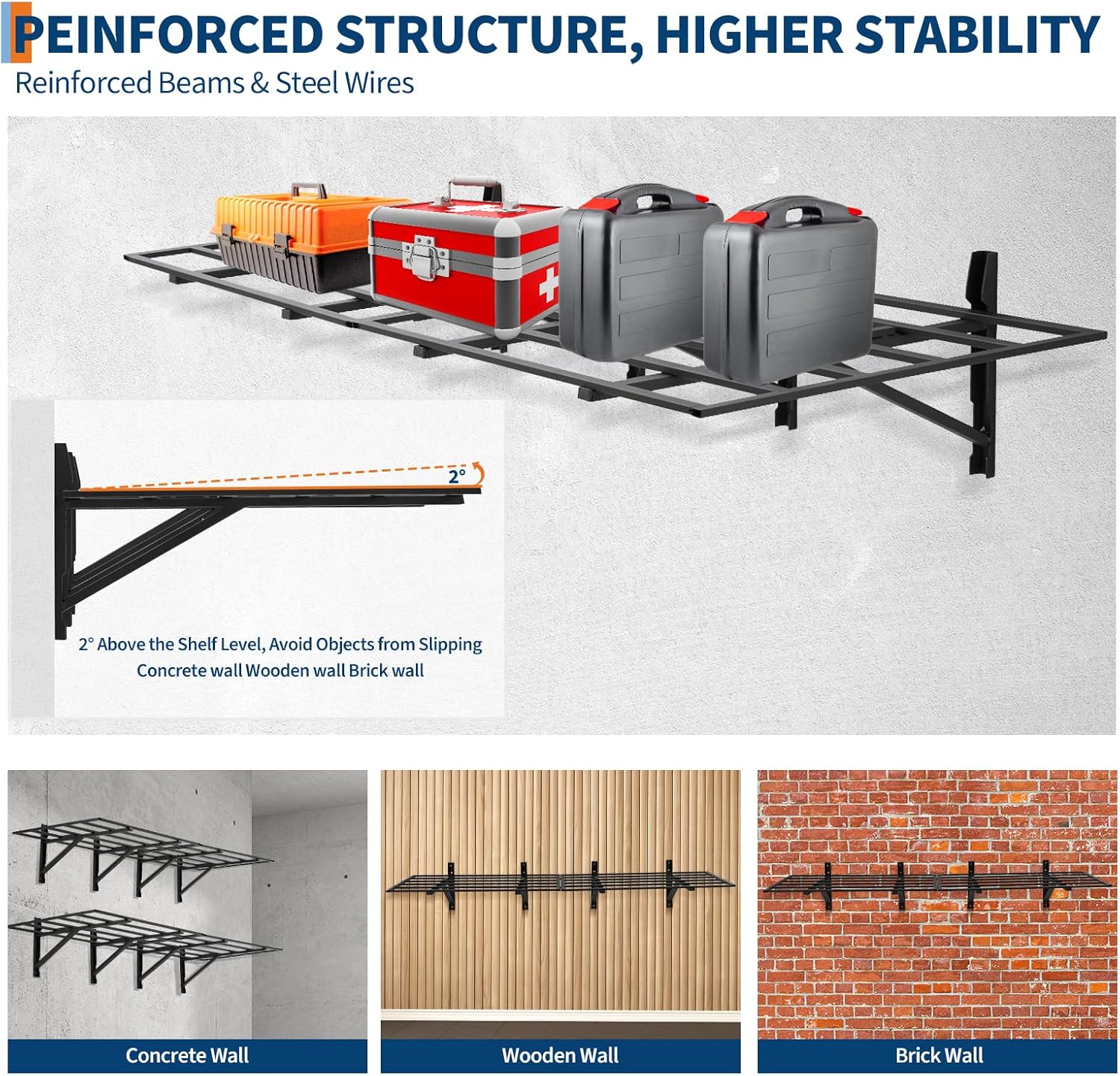 - Versatile Design: With its low-profile bracket design and the ability to be mounted side-by-side or stacked, this 2-pack shelving unit offers versatile storage solutions for garages, small pantries, or kitchens.