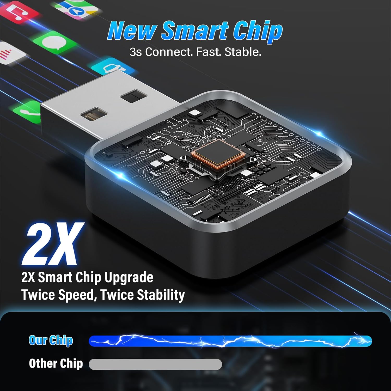 - Fast and Stable Connection: Our wireless CarPlay adapter for Apple is equipped with a high-speed 5GHz WiFi module, which provides faster data transmission rates and stronger anti-interference capabilities than traditional 2.4GHz. Supports HD video and real-time voice navigation, and can maintain a stable connection even in complex urban road conditions. You no longer have to worry about disconnection, delays or freezes