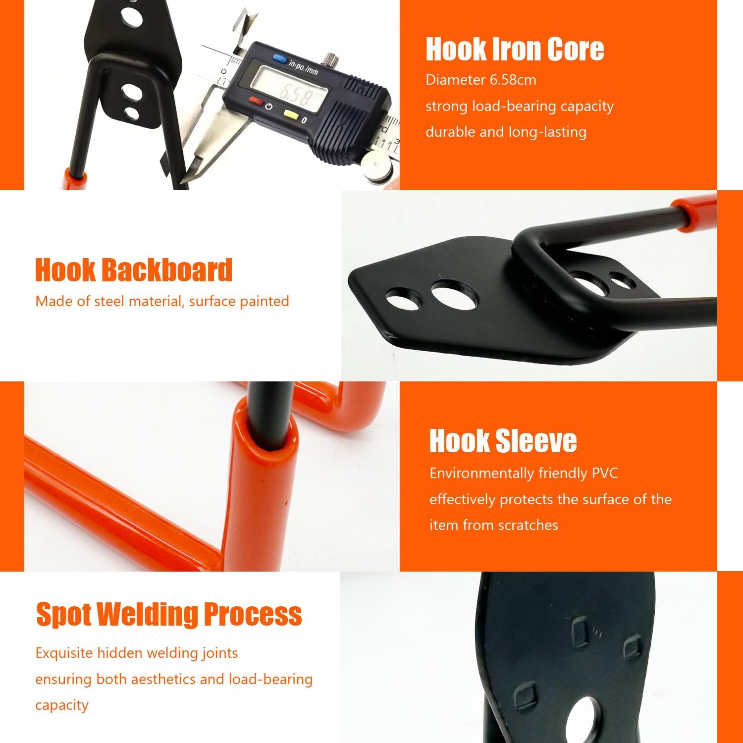 - [Anti-Slip & Protective Coating] Featuring a thick anti-slip rubber layer, these heavy-duty wall hooks grip items securely without scratching or damaging surfaces. The protective coating helps prevent slipping and rust, keeping both your tools (e.g., garden equipment, sports gear) and the hooks themselves safe from wear.