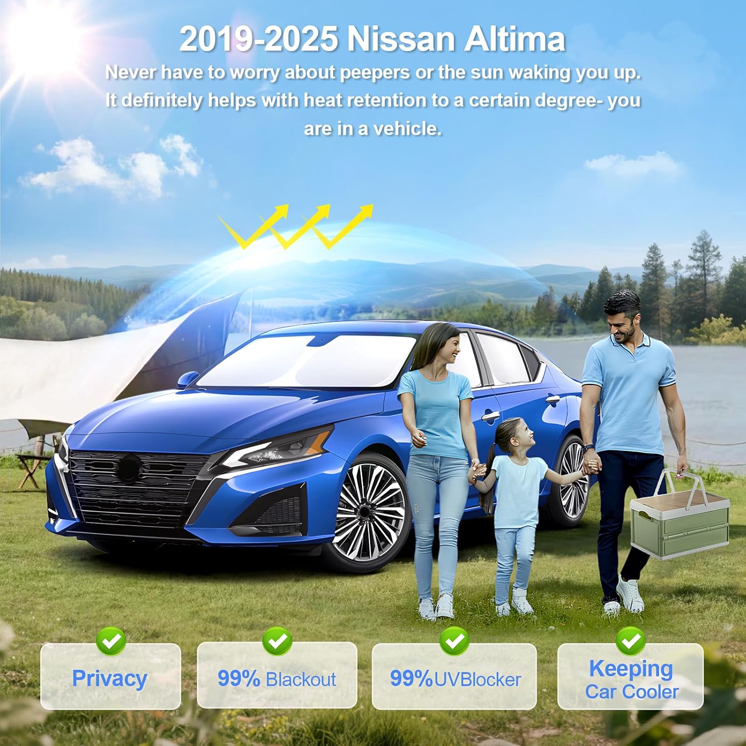 - Designed specifically:SHINELINERS full window sunshade is specially designed for Altima 2019 2020 2021 2022 2023 2024 2025.Provide your car with comprehensive UV and infrared protection, not only keeping the interior cool in hot weather but also extending the lifespan of the car's interior