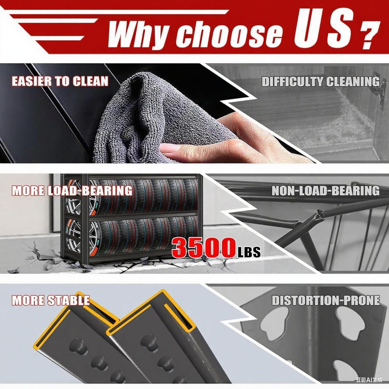 - 【Enhanced Stability with Double-Layer Uprights】Compared to basic single-layer metal shelving, our upgraded double-layer uprights for this garage shelving boost load-bearing capacity and help reduce warping. Ideal for heavy-duty use, this metal shelving design supports long-term durability with minimized wobbling or sagging, outperforming flimsier storage shelves in daily use
