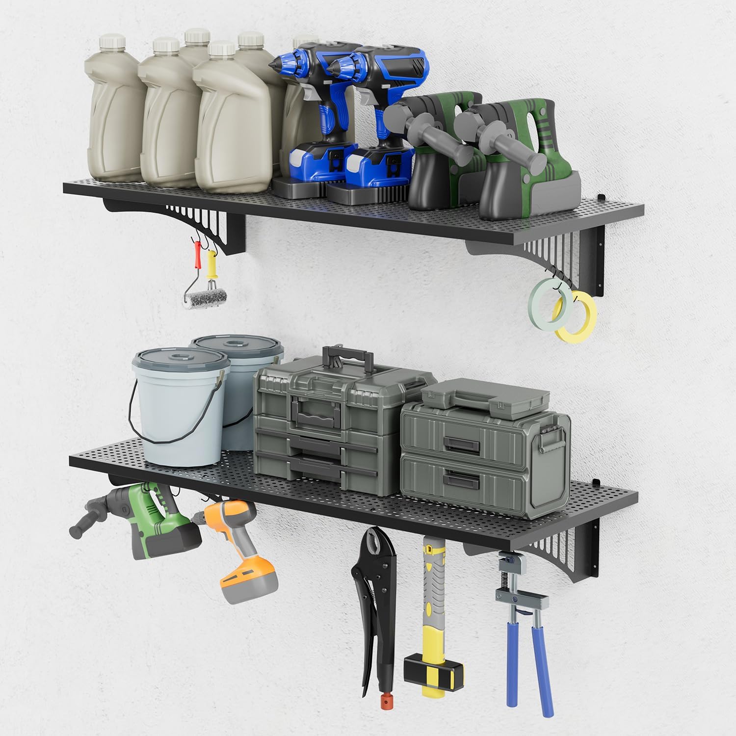 - Industrial-Grade Durability: Garage shelving wall mounted is made entirely of stamped and folded steel panels with a high-temperature powder-coated surface for durability and durability, making it suitable for any garage and versatile storage solution.