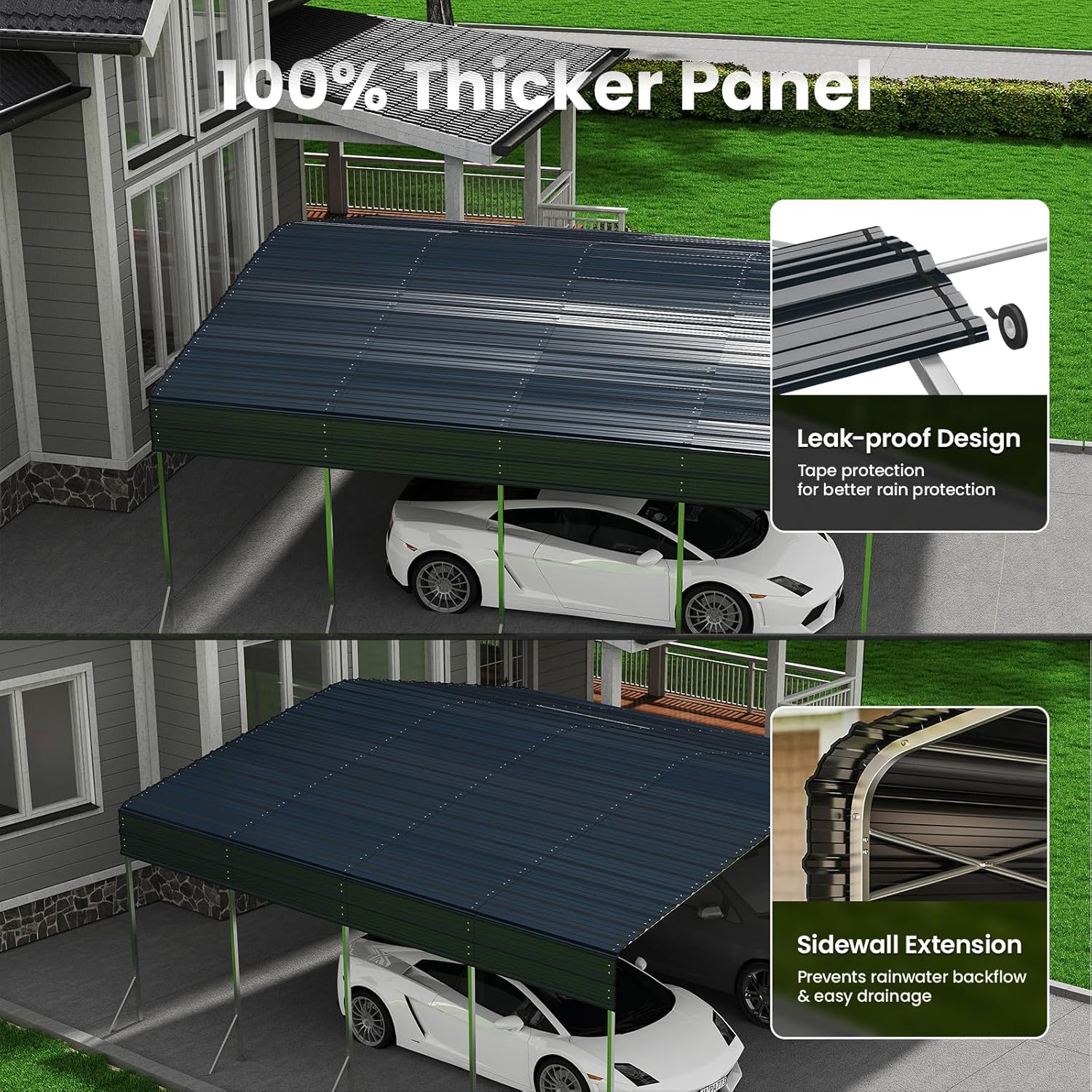 - Durable Steel Construction: This heavy-duty carport is made from premium high-strength steel with a rust-resistant coating to extend its lifespan. It not only withstands harsh outdoor conditions but also provides top-level safety against collapse