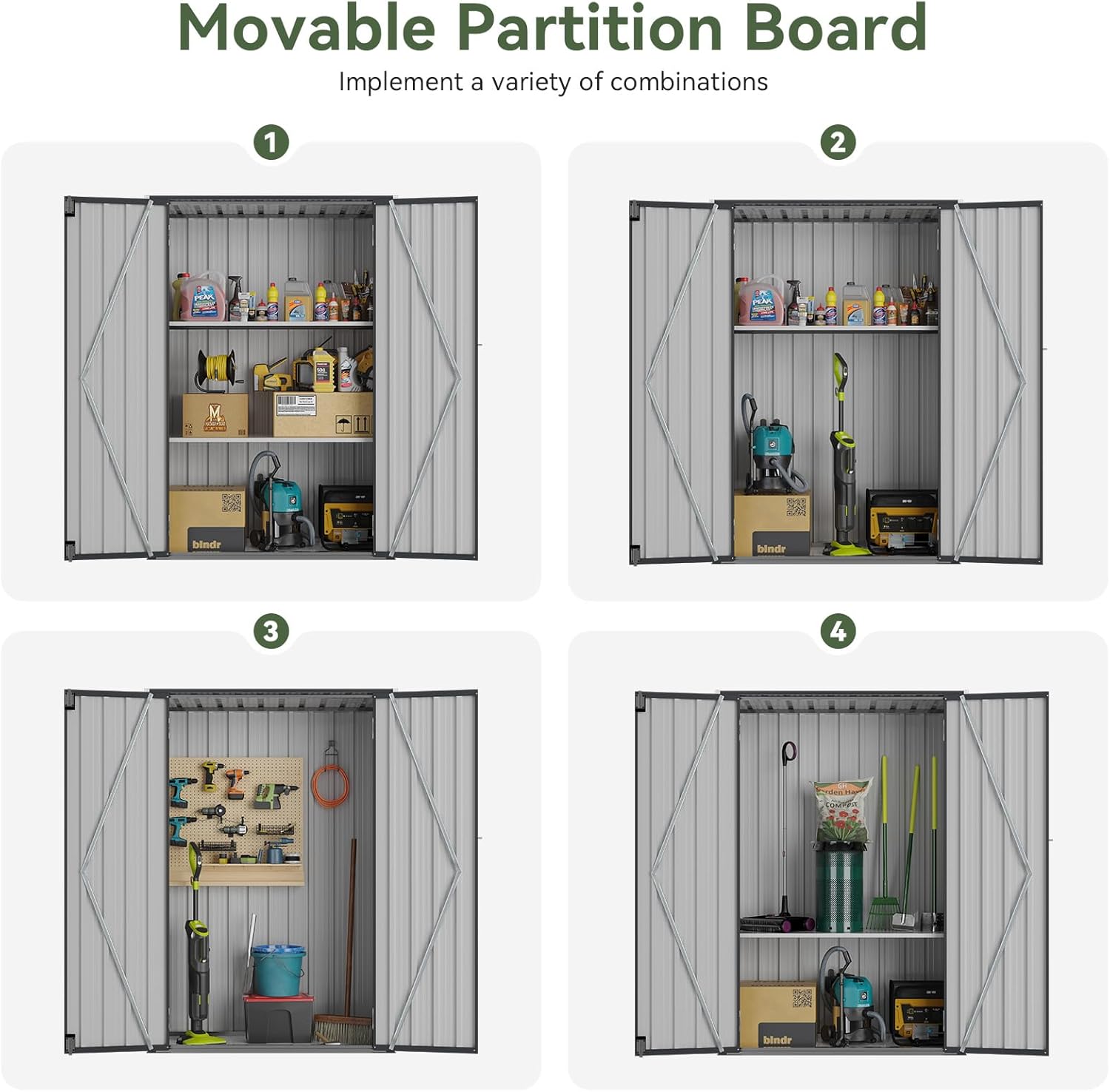 - Customizable & Sturdy Shelving System: This storage cabinet comes equipped with 2 removable shelves, each capable of holding up to 75 LBS. This allows for highly flexible organization of bulky items such as power tools, paint cans, and gardening equipment. You can effortlessly customize the layout to perfectly match your specific storage requirements.