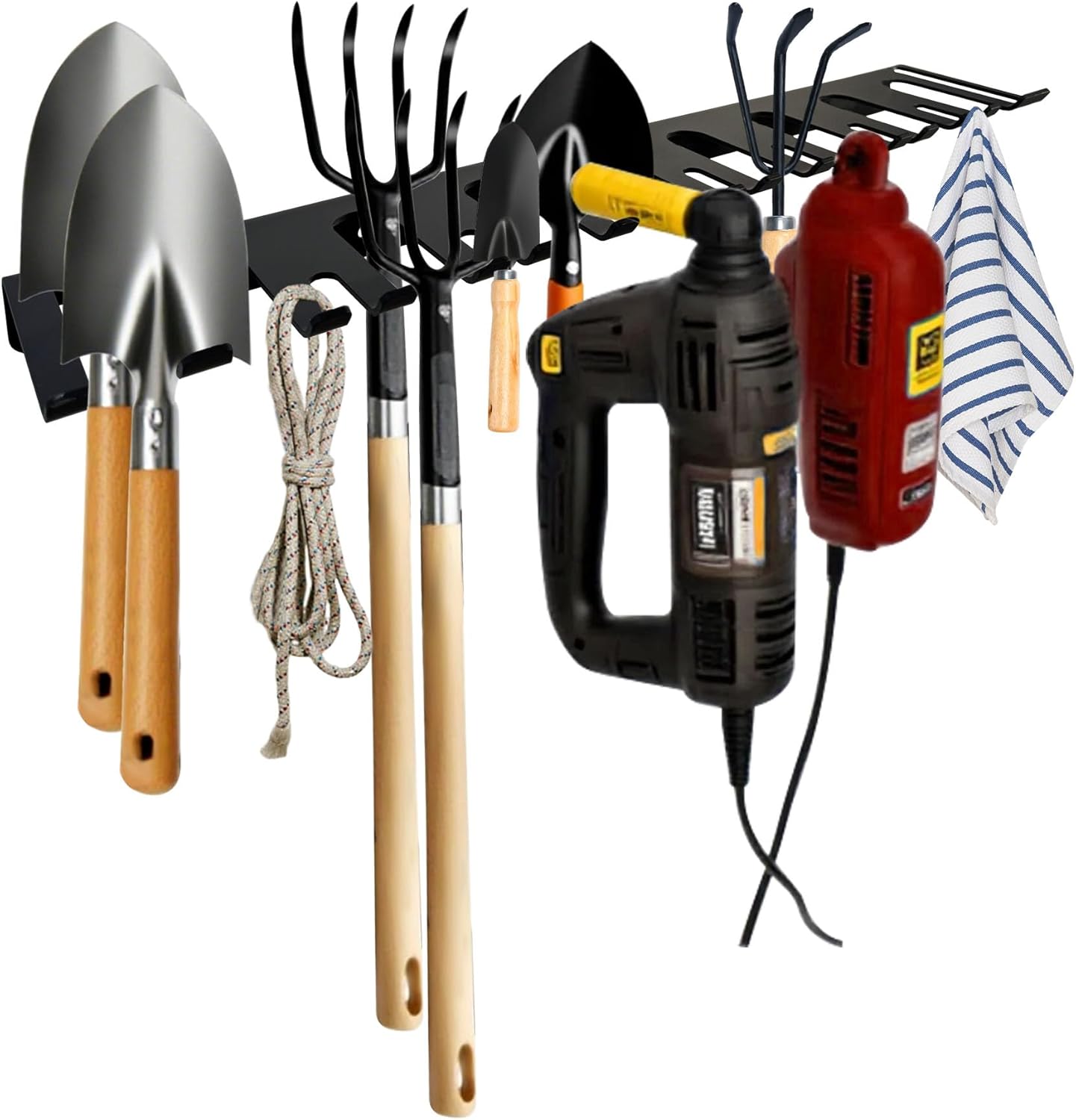 22‘’/25‘’/31‘’Black Wall-Mounted Tool Storage Rack, Suitable for Outdoor Garden, Space-Saving, Strong Storage Capacity.Barbell Wall Rack.Weight Capacity: 300 LB.-350LB