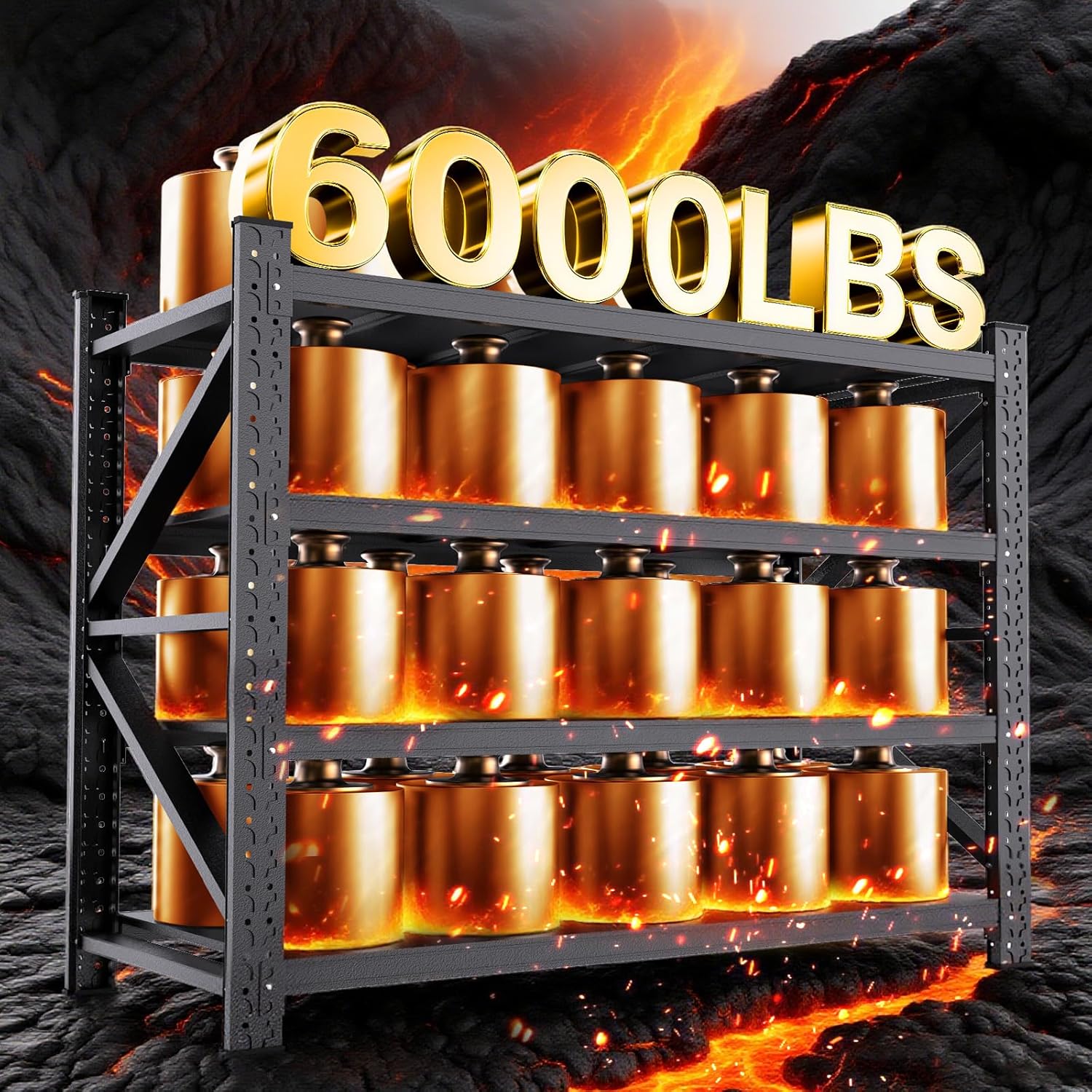 - Ultra-Stable Heavy Duty Garage Shelving: This 4-tier all-steel heavy duty shelving features a continuous upright column design with seamless connections, significantly reducing risks from loose joints. Reinforced diagonal braces distribute weight evenly, ensuring rock-solid stability even when bearing loads up to 6,000 lbs. This metal shelving provides the most solid support for your garage storage, giving you complete peace of mind